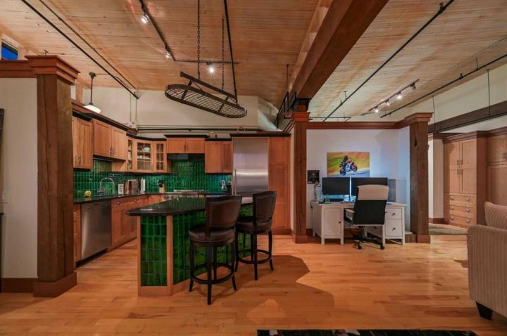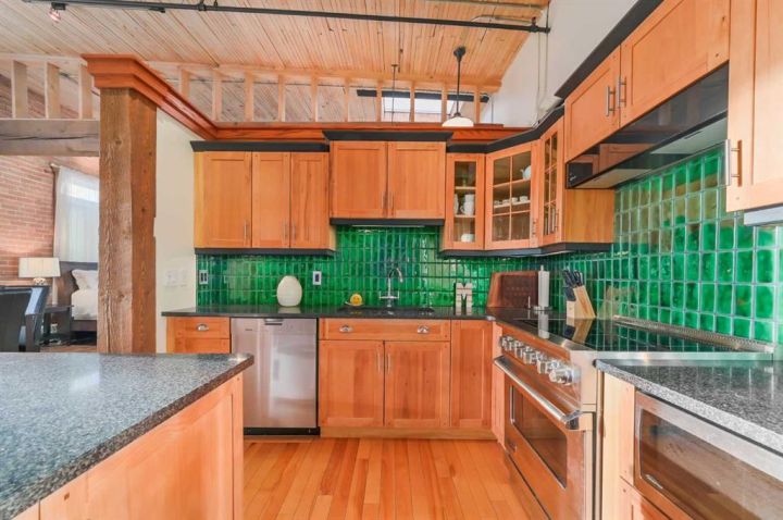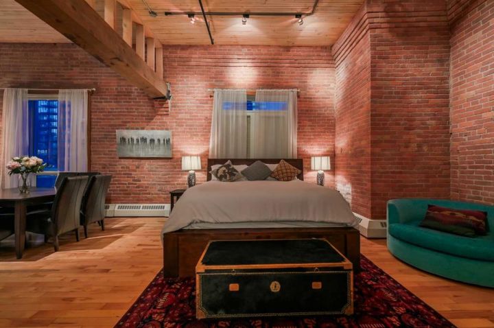 Stunning Penthouse Loft at The Historic Hudson. Nothing will compare...Especially if you're a couple or single working from home or downtown. Originally built in 1909 by the Hudson’s Bay Company, The Hudson is Calgary’s oldest warehouse converted into mixed-use residential/commercial live-in lofts. This east-facing penthouse loft blends rich history with modern luxury—featuring 13’ ceilings, massive wood beams, exposed brick walls, and two skylights. The chef’s kitchen includes recycled oak cabinetry, granite countertops, and high-end stainless steel appliances: Viking induction range, Sub-Zero freezer, and Miele fridge. The expansive open-concept layout offers large living and dining areas, maple hardwood flooring, and a brick-faced gas fireplace.The primary suite includes a walk-in closet, spa-style ensuite with heated floors, a freestanding cast-iron tub, 10 mm glass rain shower, and private water closet. Two Juliet balconies with French doors add downtown skyline views. A built-in Murphy bed and full wall of oak storage enhance versatility.