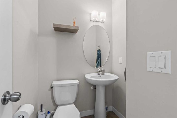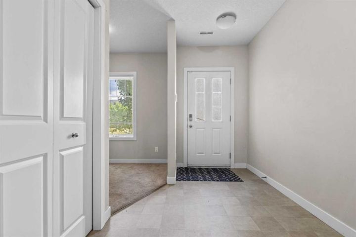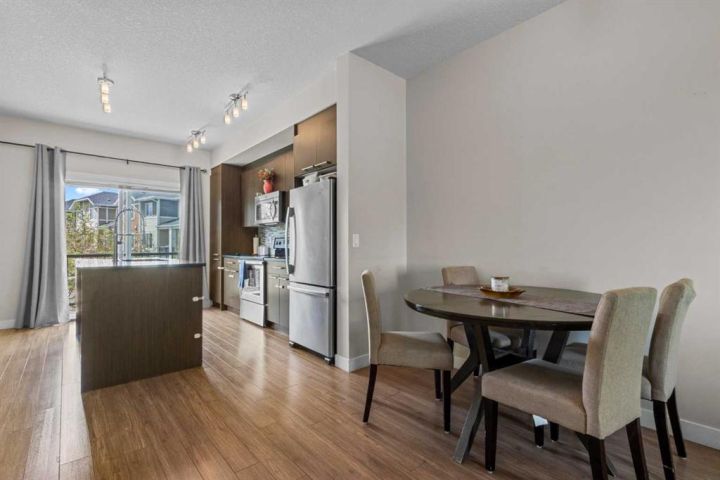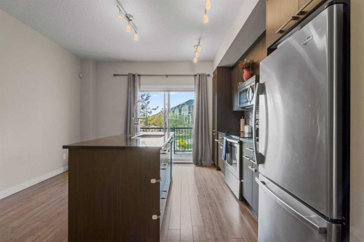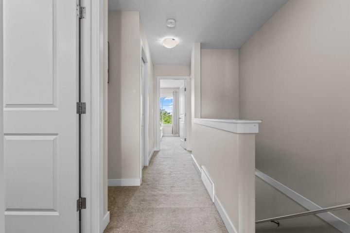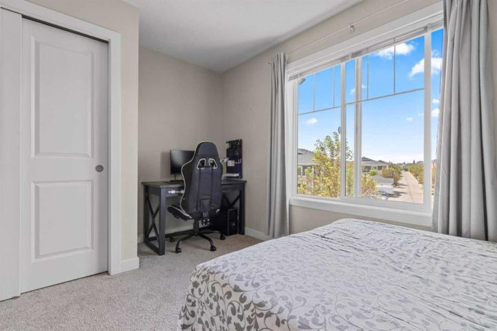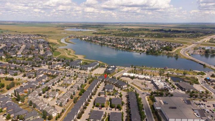 Start fresh in a home that blends comfort, convenience, and a coveted lakeside lifestyle. This bright and inviting 2-bedroom + office townhome offers more than just great space—it delivers unbeatable value with a rare titled surface parking stall and a single attached garage, all set in a prime location with west-facing lake views. Tucked within the sought-after community of Westmere, you’re just a short stroll from everything you need—grocery stores, coffee shops, restaurants, fitness studios, walking paths, and, of course, the lake itself. Whether you're running errands or catching sunset views by the water, everything is at your fingertips. Inside, the ground level welcomes you with a generous foyer and a flexible den that’s perfect for a home office, gym, or creative space. This level also features a convenient 2-piece bathroom and access to the garage. Up one level, the open-concept kitchen is a cheerful and functional hub with granite countertops, stainless steel appliances, a central island with breakfast bar seating, and sliding patio doors to your sunny west-facing balcony. The adjacent dining area flows seamlessly into the bright and airy living room—ideal for entertaining or quiet evenings overlooking the lake. Upstairs, two well-proportioned bedrooms offer privacy and functionality. The primary includes a 4-piece ensuite, while the second bedroom is steps from another full bathroom. You’ll also love the super convenient upstairs laundry area. Whether you're a first-time buyer, downsizer, or investor, this well-located and thoughtfully designed townhome is a rare find. Enjoy the space, soak in the views, and take advantage of a lifestyle that brings the best of Chestermere right to your doorstep.