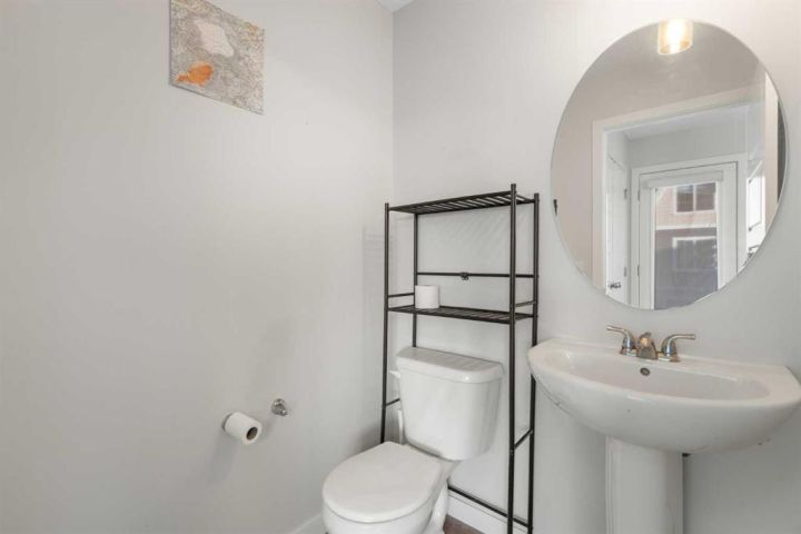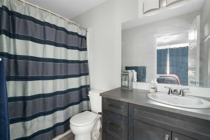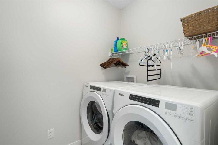 Upstairs, the spacious primary suite includes a 4-piece ensuite and walk-in closet. Two additional bedrooms, another full bathroom, and a convenient upper-floor laundry (upgraded Whirlpool washer & dryer included) complete this level.