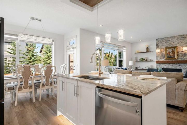*OPEN HOUSE SAT NOVEMBER 8th 1-3PM* What a fantastic family home!! Nestled on one of the most sought-after streets in award-winning Cooper’s Crossing, this stunning home is designed to impress. Step inside and be greeted by a gorgeous, open foyer with soaring ceilings and a grand staircase as well as a main floor bedroom that easily fits a queen-sized bed and could be used as a home office or homeschool space. Before you enter the main living area you find a fabulous and well situated guest bath perfectly tucked away. The living space dramatically opens with 9FT ceilings, wide vinyl plank flooring, adjustable LED pot lights and chandeiler, and oversized windows with custom blinds, all allowing for plenty of light.