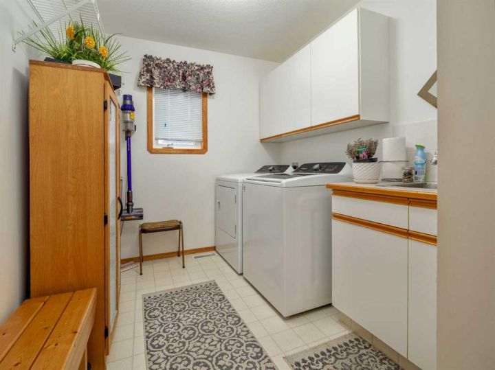 Beautiful Family Home in a Great Location! This 1,335 sq ft bungalow checks all the boxes on your “I want” list! The open and bright main level features a spacious formal living room, a well-appointed kitchen with a pantry and island, a convenient main-floor laundry, and 2 bedrooms. Off the dining area, you’ll love the fully enclosed deck/sunroom—perfect for relaxing year-round and complete with a hot tub. The primary bedroom offers a 3-piece ensuite and a walk-in closet for added comfort. Downstairs, the fully finished basement includes a large family room with a cozy gas fireplace, a wet bar, 2 additional bedrooms, and another full bathroom—ideal for family gatherings or guests. Outside, the fully fenced yard includes a storage shed and a large graveled parking area perfect for RVs. The front driveway, sidewalk, and steps have been refinished with rubber paving—durable, flexible, and slip-resistant. Additional features include an attached heated garage, central air conditioning, underground sprinklers, and all appliances included. This home has been exceptionally well maintained and shows true pride of ownership throughout. Don’t wait—come see if it checks all the boxes on your “I want” list!