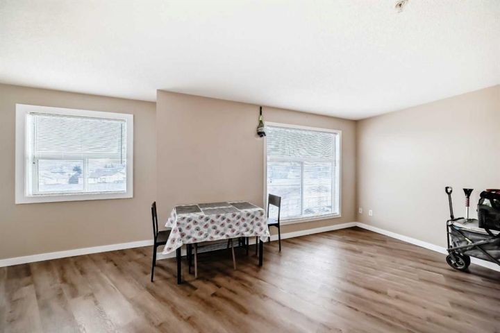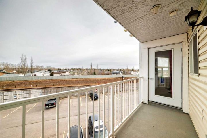 The open-concept main area is highlighted by laminate flooring with in-floor heating—no bulky registers here—and hot water on demand powered by a new boiler system, ensuring year-round comfort and efficiency. The large balcony provides plenty of room for outdoor seating or a cozy patio setup, ideal for relaxing or entertaining.