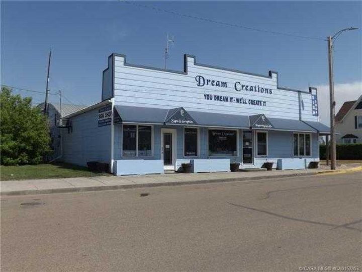 Looking for a building with an ideal location? Located on a corner lot on 881 and 51 ave. in Hardisty. This building has 4838 sq ft of space for your business. With a location like this and space there is a multitude of business that would be we suited for this space. Also ample space for even a couple businesses. The store font area is a beautiful area with large windows. There is a large walk in cooler with glass sliding doors which was part of the pre existing flower shop. Two bathrooms and a large over head door at grade level which is perfect for large freight orders. The business was previously operated as sign/promotional item shop and previous to that it was an oilfield supply store. There is also a vacant lot that can be purchased separately . Should you wish to open a sign/ promotional business the seller would consider selling equipment.