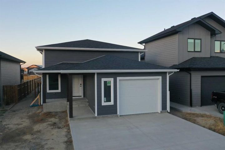 Welcome to 21 Sage Brush Court! This is no cookie cutter, run-of-the-mill home you’ve seen repeated all over town. This is a well crafted, custom build by Reyno's Contracting, designed with care, finished with quality, and shaped around real life functionality. You feel it right away, stepping onto the wide front porch and into the spacious entryway with its generous closet. Inside, 9 foot ceilings on the main level create that just right sense of airiness. Wide plank floors and modern lighting set the tone: clean, bright, and elevated without being overdone. The heart of the home is the kitchen, of course, and this one nails it. Warm wood cabinetry, quartz countertops, matte black hardware, a prep and gathering island, and those two pendant lights that are somehow just perfect. Tucked beside it, the dining area feels open yet defined, with a door leading straight out to the west facing deck for easy transitions from dinner to sunset. There are two bedrooms upstairs, the primary suite includes a walk-in closet and an en-suite with a walk-in shower, while the second bedroom sits just across the hall from a stylish full 4pc bathroom. Downstairs, the lower level is ready and waiting with large windows for natural light, plumbing for a third bathroom if needed and plenty of open space to make your dreams a reality. The laundry room is complete and leads into the utility plus under the stairs storage. Having an attached garage is such a bonus, this one is longer than normal and offers plenty of room for your vehicle plus seasonal storage, bikes, or tools. Plumbed and ready for A/C and new home warranty for piece of mind, this brand new home is waiting for you!