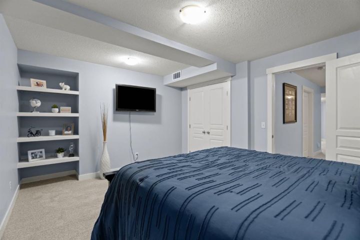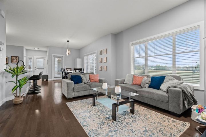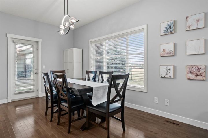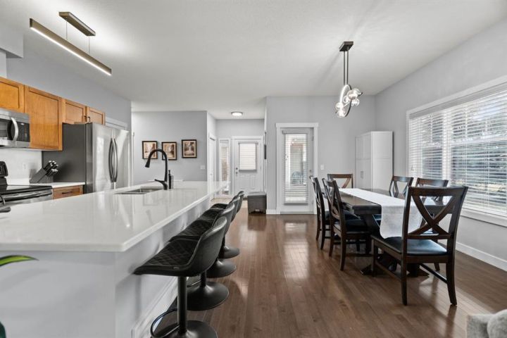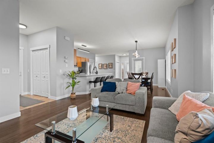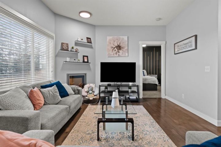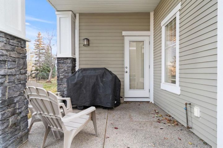 OPEN HOUSE SUNDAY 2PM-4PM! A RARE OPPORTUNITY to live in an UPDATED main-level BUNGALOW BACKING ONTO GREENSPACE! This sprawling 3 BEDROOM, 3 BATH home provides over 2,000 developed square feet! Offering an abundance of natural light and overlooking a serene park. You will immediately notice the soaring 9’ ceiling, gorgeous hardwood floors, stylish lights, fresh paint and open floor plan. The modern kitchen is a focal point with solid maple cabinets, a timeless subway tile backsplash, sleek stone counters and upgraded stainless steel appliances. This has a flush eating bar that seamlessly connects to the spacious dining room. Which provides direct access to your patio with a convenient BBQ gas line and mature trees that add additional privacy. Adjacent to the dining room is a spacious living room featuring a charming gas fireplace. On one side of the home is the well sized primary with a walk in closet and its own updated ensuite including new stone counters, tile backsplash, and upgraded plumbing fixtures. On the other side is the additional bedroom or office, with a 4pc updated main bathroom. Completing this level is a mudroom space with access to your attached garage. The basement has several large windows and an expansive rec room, making it ideal for entertaining. Completing the space is a third bedroom, 3 pc bath and laundry room. This home is in the highly sought-after Cougar Ridge community close to transit, great schools, Canada Olympic Park, Westside Rec Centre, plenty of restaurants and shops in West 85th shopping district and pathways. Enjoy quick access to downtown, or the mountains via Stoney Trail. Offering the lock and leave lifestyle you want in a pet friendly property with affordable condo fees. Schedule your private showing or view the virtual tour.