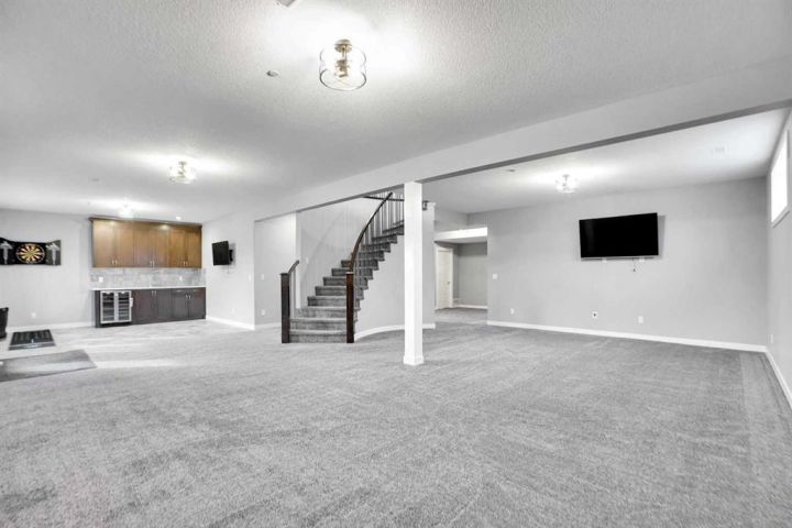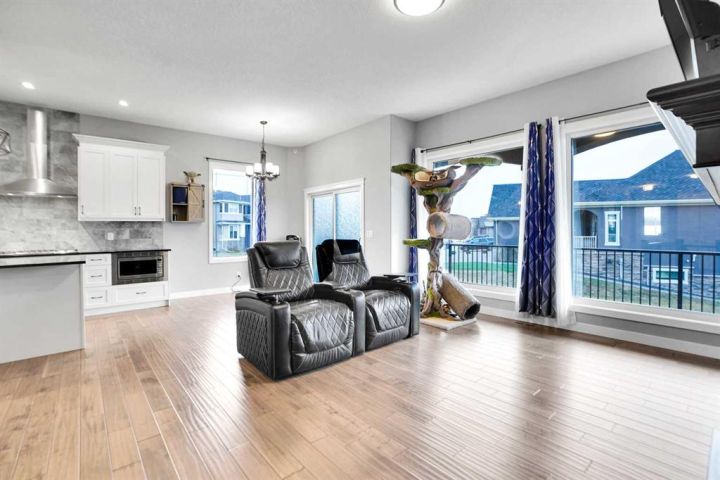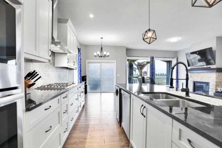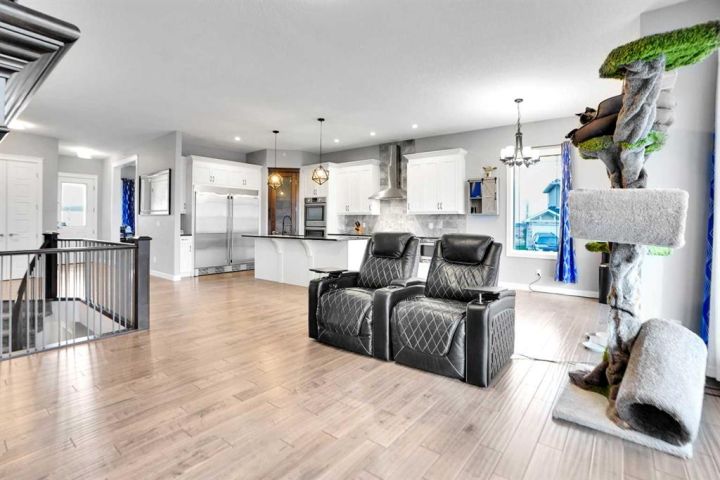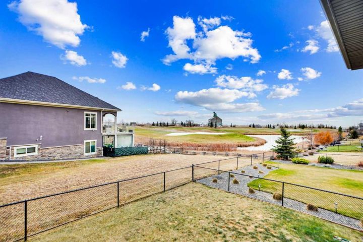 Located in the prestigious Lakes of Muirfield community in Lyalta, this stunning walk-up bungalow offers 3,773 sq.ft. of developed living space and an oversized heated 4-car garage nearing 1,000 sq.ft.—a true haven for car enthusiasts. From the moment you step inside, you'll be captivated by the engineered hardwood floors, 8' doors, and expansive layout featuring a spacious main floor den and convenient laundry. The chef’s kitchen features a massive eat-up island, granite countertops, stainless steel appliances including double ovens, a gas range, Sub-Zero fridge, corner pantry, and abundant cabinetry, all flowing seamlessly into the dining area and out to a private deck overlooking the 10th green. The bright living room is anchored by a double-sided fireplace and offers a warm, inviting space for gathering and relaxation. Just beyond, the primary suite is a private retreat with fireplace, direct access to the back deck, and a spa-inspired 5-piece ensuite featuring dual sinks, a soaker tub, steam shower, and walk-in closet. A versatile second room on the main level offers space for a gym, guest room, or add a wardrobe for an additional bedroom, complemented by a full 4-piece bath and extra storage. Downstairs, the walk-up basement is an entertainer’s dream with a massive recreation room, wet bar, new wine fridge, two huge bedrooms with soundproofing, a stylish 4-piece bath, and ample storage. Outside, enjoy a fully fenced corner lot backing onto green space with views of the Lyalta grain elevator and the 10th green—perfect for morning sunrises and evening relaxation. Experience the quiet of country living with starry nights and northern lights, all just 15 minutes to Strathmore, Langdon, and Chestermere, and 20 minutes to Calgary’s city limits. This hidden gem offers luxury, space, and serenity in a growing golf community.