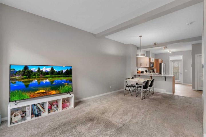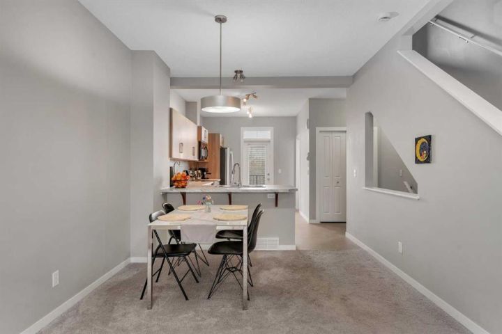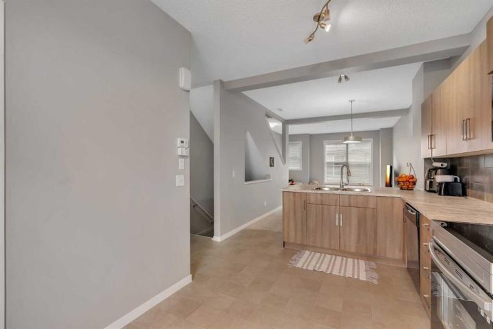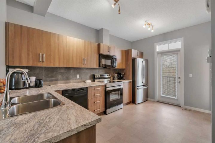 Discover this immaculate townhome perfectly situated in a quiet location, backing onto beautiful green space with panoramic views. Flooded with natural light, the home features large windows throughout and a bright, open-concept layout. The spacious kitchen offers sleek modern cabinetry, contemporary countertops, a stylish backsplash, updated stainless-steel and black appliances, plenty of storage, and work space. Imagine enjoying your morning coffee on your private balcony overlooking the expansive green space watching the wildlife.