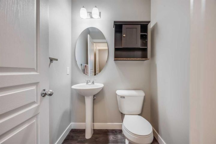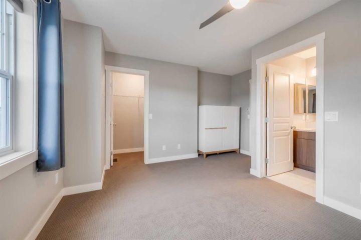 Meticulously maintained and move-in ready, this townhome offers unbeatable walkability to nearby shops, restaurants, parks, and scenic walking trails. The main level features an open-concept layout with a spacious living and dining area, a stylish 2-piece powder room, and a well-appointed kitchen complete with a large quartz island, quality cabinetry, stainless steel appliances, and access to an upgraded deck—perfect for everyday living and entertaining. Upstairs, you'll find a bright flex space ideal for a home office or reading nook, along with two generous primary bedrooms, each offering walk-in closets and private ensuites featuring quartz countertops and tub/shower combos. The lower level includes a laundry area, storage space, and direct access to the double attached garage. With plenty of extra parking right out front, low-maintenance living. McKenzie Towne offers charming architecture, parks, schools, and a vibrant community with many amenities and access to nature. Schedule your private showing today!