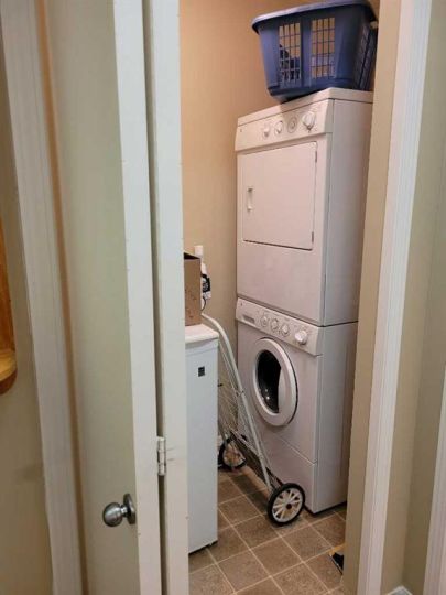 This neat move in ready suite has 2 bedrooms,2 baths,walk-in closet, in suite laundry, open floor plan. This unit was freshly painted also new backsplash was installed recently.Off the livingroom you will find a deck facing a southeast direction. This suite comes with 1 titled underground heated parking stall.Close to all amenities