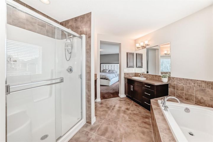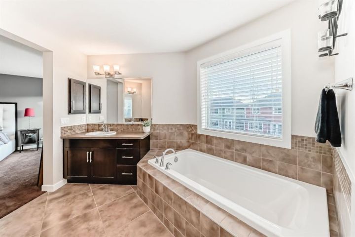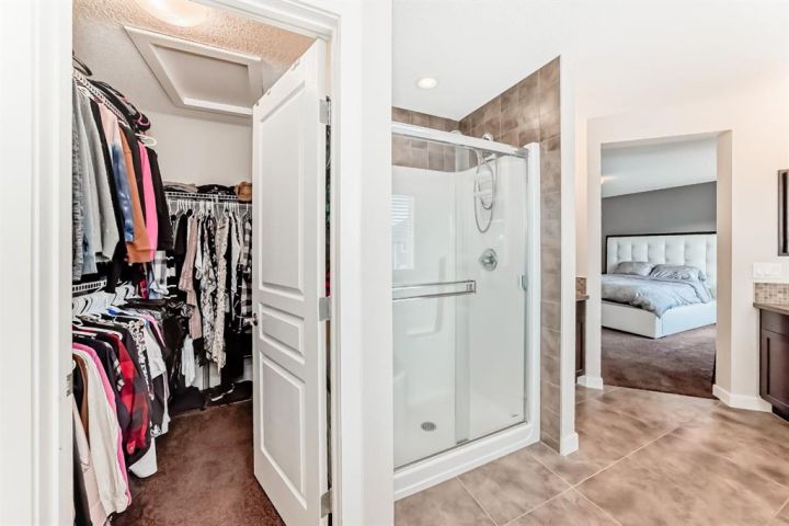 Upstairs, you’ll find a spacious bonus room wired for surround sound, perfect for family movie nights, plus a large office nook that fits a full-sized desk. The second and third bedrooms are bright and roomy, giving everyone their own comfortable space. The primary suite is a true retreat, with a feature wall, space for a king-sized bed, and a luxurious 5-piece ensuite complete with double vanities, a soaker tub, separate shower w/ tile surround, walk-in closet, and linen closet.