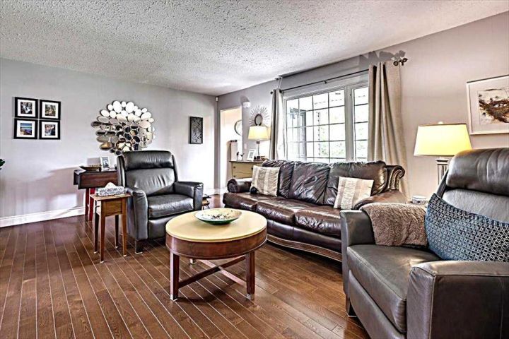 Are you looking for your first home! Or maybe down sizing and wanting to live in one of those mature quiet neighborhoods that offers tranquility but want to avoid the associated expenses of remodeling to a new trendy comfortable design, then you have found it. Great floor plan that you will enjoy the moment you enter from the cozy living room with hard wood floors, complete with built in cabinetry and a linear fire place with TV. Lots of character and charm offered in this 1 1/2 story with 3 bedrooms 2 bathrooms with a finished basement. Nothing to do but move in. Beautiful full length covered front deck to sit and enjoy those quiet summer months. Many upgrades over the years from exterior to interior and include wrapped and strapped with vinyl siding along with most windows and doors. Hardwood flooring through out, upgraded lighting, plumbing, kitchen cabinets and countertops with pull out pantry. Built in wardrobe with pull out shelving and baskets in the primary main floor bedroom. A spa like bathroom to die for with a full deep soaker tub and full length glass shower and features an exterior door to a private hot tub area with its own deck. Top floor has 2 good size bedrooms with arched ceilings and overlook the front yard or the back yard. Basement finished with a comfortable family room plus a den/gym area and a nice size laundry room with a 2 PC bathroom. Wonderful landscaping and grounds that is very private and designed with low maintenance back yard. Lower Trex deck and interlocking brick patio plus a paving stone area with its own gazebo. Built in plant boxes, trees, shrubs all make this an especially beautiful fully fenced back yard with room to park your RV in the rear and a 24' garage that is insulated and heated with custom built cabinets and new shingles installed Nov 2025. All around character and charm awaits, come see for yourself.