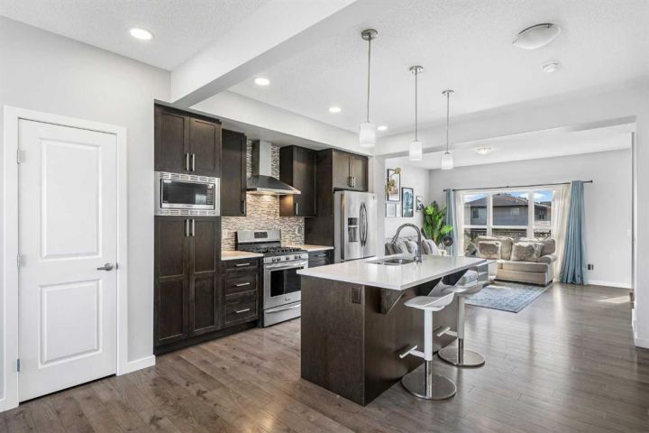 Welcome to this stunning 3-storey semi-detached home offering over 2,000 sq. ft. of beautifully designed living space in the highly desirable community of Walden SE Calgary. This immaculate home features 4 spacious bedrooms, 2.5 bathrooms, and a versatile main floor den—perfect for a home office or gym, and no HOA in the community and no condo fee. The house also has central Air Conditioning.