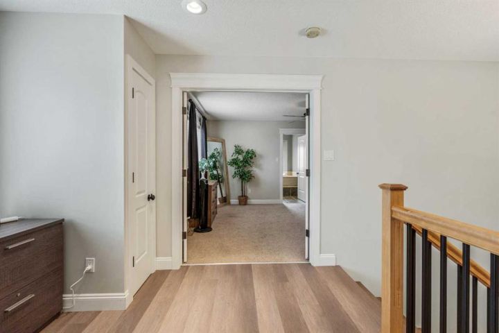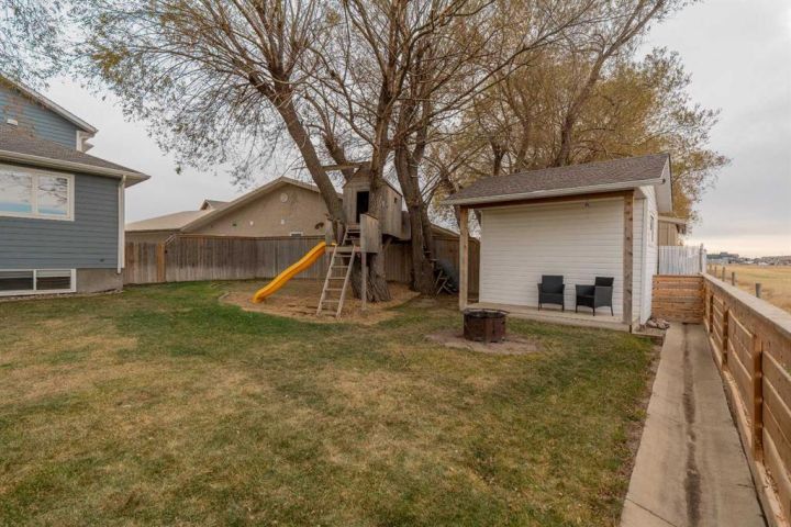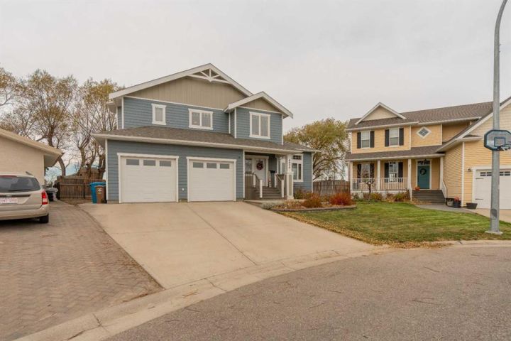 Tucked away in a quiet cul-de-sac on the northwest edge of Taber, this beautiful family home offers a perfect blend of space, comfort, and connection. It’s a place where kids can ride their bikes to the nearby park, where evenings are spent on the deck watching deer in the distance, and where every room feels ready to grow with you. Step inside and you’re greeted by a spacious, welcoming front entry — the kind that instantly feels inviting and open. The main floor features soaring vaulted ceilings, creating a bright and airy atmosphere that connects the living room, kitchen, and dining space seamlessly. The kitchen sits at the heart of it all, designed for real family living — you can chat with guests in the living room, keep an eye on homework at the table, or enjoy morning coffee at the island while looking out over the backyard. Just off the main area, a versatile flex room offers options for a home office, playroom, or guest bedroom. There’s also a main floor laundry room, a second bedroom, and a full 4-piece bathroom, as well as a mudroom entry from the double garage — perfect for keeping things organized and tidy. Upstairs, the primary suite is your private retreat. Behind French doors awaits a spacious bedroom with a luxurious 4-piece ensuite featuring a jet tub for evening relaxation, plus a large walk-in closet. An adjoining loft-style flex space offers the perfect spot for a cozy reading corner, yoga nook, or home office. Downstairs, the fully developed basement extends the living space with a large family room — perfect for movie nights, a games area, or a home theatre setup. Two additional rooms provide privacy for older kids, guests, or hobbies, while large windows fill the lower level with natural light. You’ll also find another full bathroom and ample storage throughout. Step outside and discover what truly makes this home special — the backyard oasis. Enjoy peaceful evenings under the covered deck or gather around the patio for summer barbecues. Watch the kids play in the yard, complete with a playhouse and zipline, or tend to your raised garden beds. With mature trees, a storage shed, and open views of the field beyond, it’s a rare balance of privacy and space. From its quiet location near schools and parks to its thoughtful layout and family-friendly design, this home is more than a place to live — it’s a place to belong. Don’t miss your chance to make it yours.