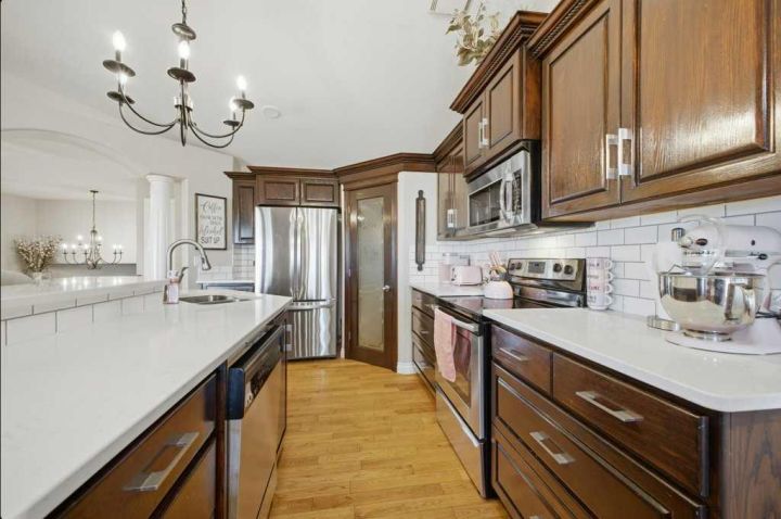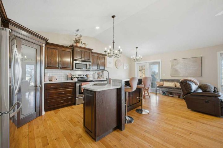 Welcome to this beautiful 5-bedroom, 3-bathroom home located in a quiet close, offering the perfect combination of comfort, functionality, and space for the whole family. As you step inside, you’re greeted by an inviting foyer with a split-level design leading either upstairs or down. The upper level features a bright and spacious kitchen with rich dark cabinetry, stainless steel appliances, and plenty of cupboard and counter space. An island with bar seating and a dining area nearby create the ideal setup for family meals or entertaining guests. The adjoining living room offers a warm and welcoming space to relax and unwind. Down the hall, you’ll find a 4-piece bathroom, two well-sized bedrooms, and the primary bedroom complete with a private 3-piece ensuite. The lower level offers even more living space with two additional bedrooms, another full 4-piece bathroom, and a large recreation room—perfect for family gatherings, movie nights, or a play area. A generous laundry room with ample cabinetry and a convenient sink adds extra practicality to this level. Outside, the expansive, fully fenced backyard is ideal for kids, pets, or outdoor entertaining. Enjoy the covered deck or make use of the handy storage shed for all your garden tools and equipment. The attached 21’ x 23.6’ garage provides secure parking and additional storage space. This home has everything you need and more, all in a peaceful and family-friendly location. A must-see for those seeking space, comfort, and quiet living!