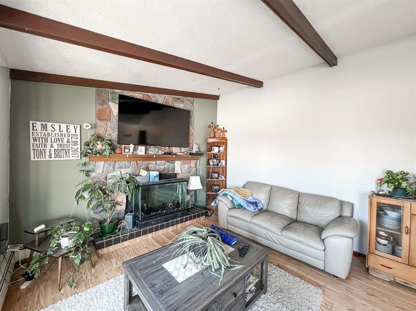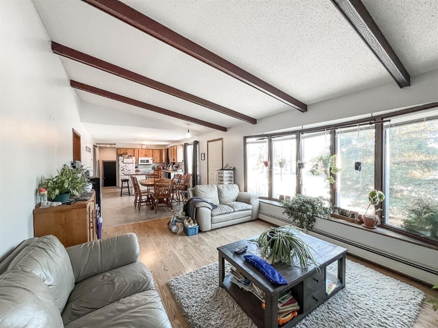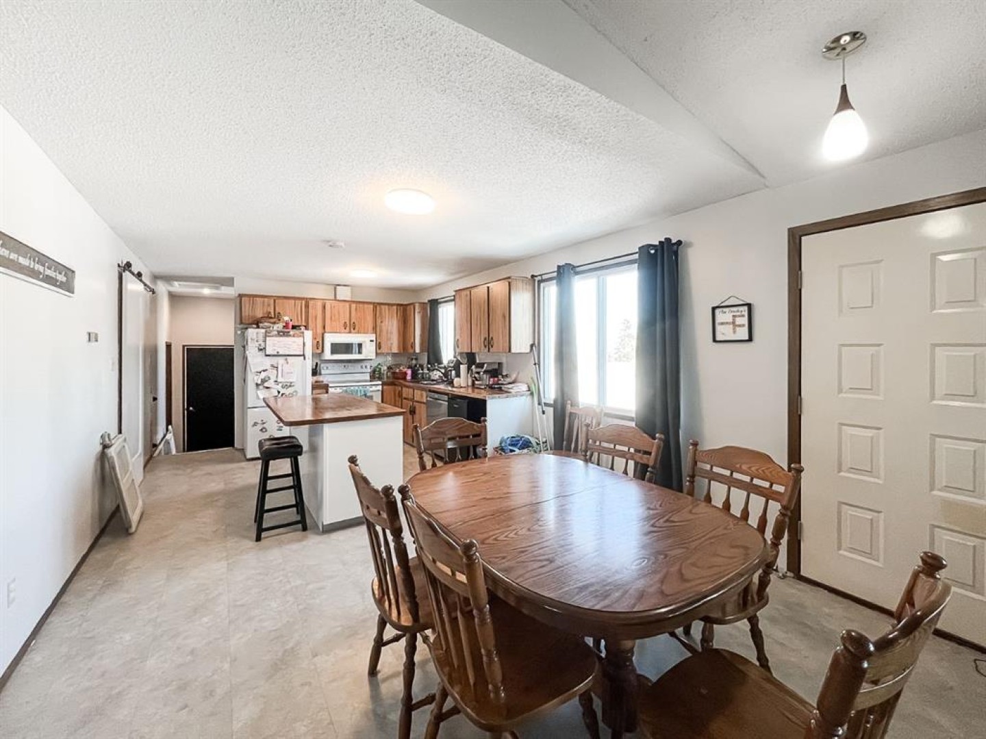 This welcoming 5-bedroom, 2-bathroom home sits on a generous corner lot in Girouxville and truly offers everything a family could want. The open-concept main floor boasts a bright, airy layout with large windows, an eat-up kitchen island, and abundant cabinetry that flows seamlessly into the dining and living areas. Ideal for both everyday living and effortless entertaining. 3 main-floor bedrooms and a 4-piece bathroom provide convenience and comfort, while the primary bedroom offers direct access to the back deck and yard through sliding patio doors. You’ll also appreciate the main-floor laundry and a spacious mudroom-style entrance off the attached garage. The fully finished basement adds incredible versatility, featuring a large rec room, 2 additional bedrooms, a 3-piece bathroom, a flexible bonus room perfect for an office or home gym, and 2 oversized walk-in storage closets complete with built-in shelving. Outside, the expansive lot delivers ample space for outdoor activities, and the back-lane access is perfect for RV parking or extra storage. Move-in ready and packed with value, this home is the perfect fit for a growing family. Book your showing today!