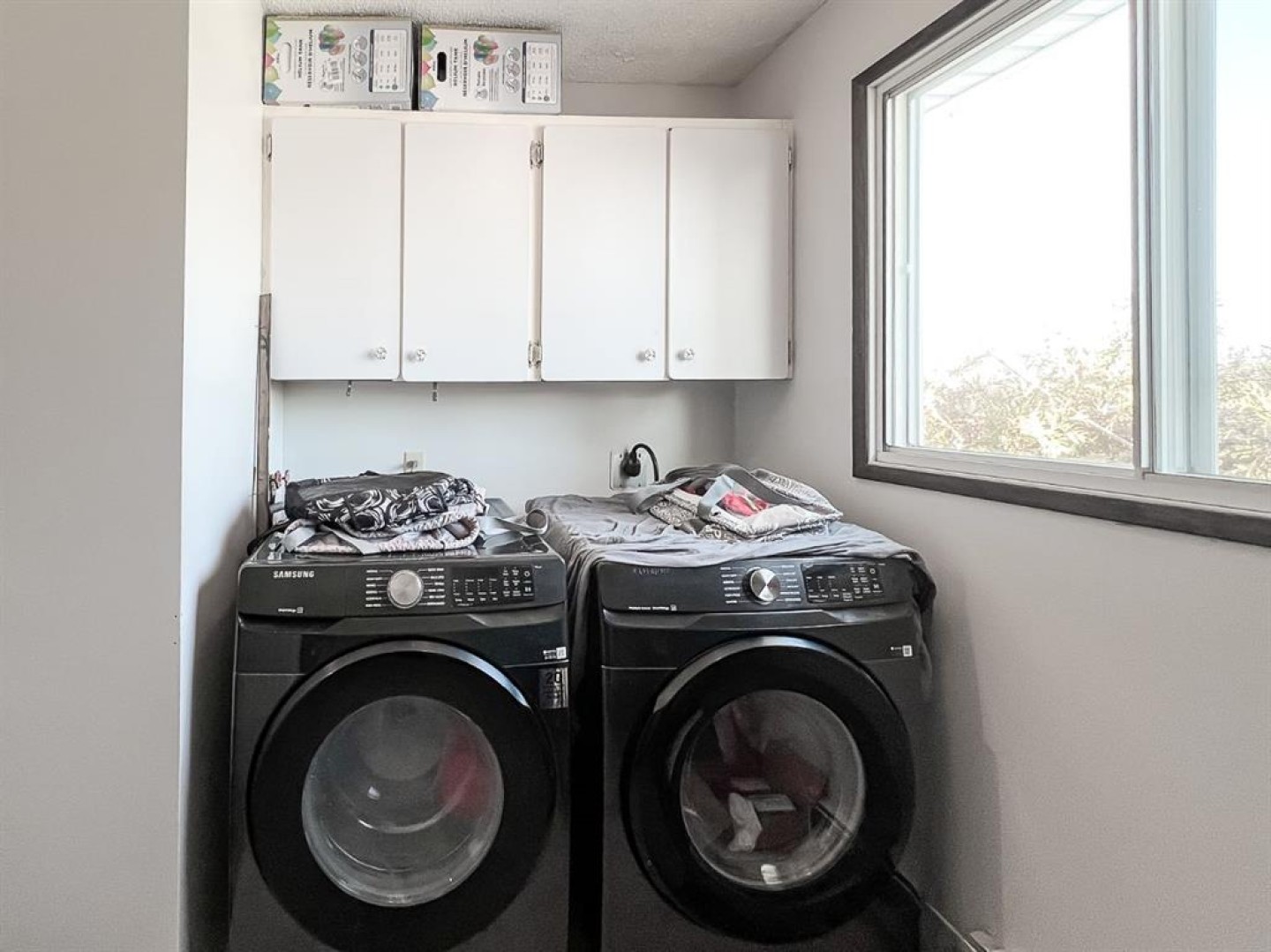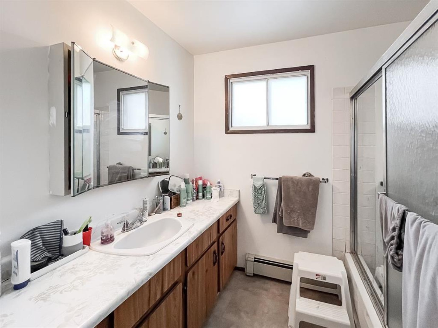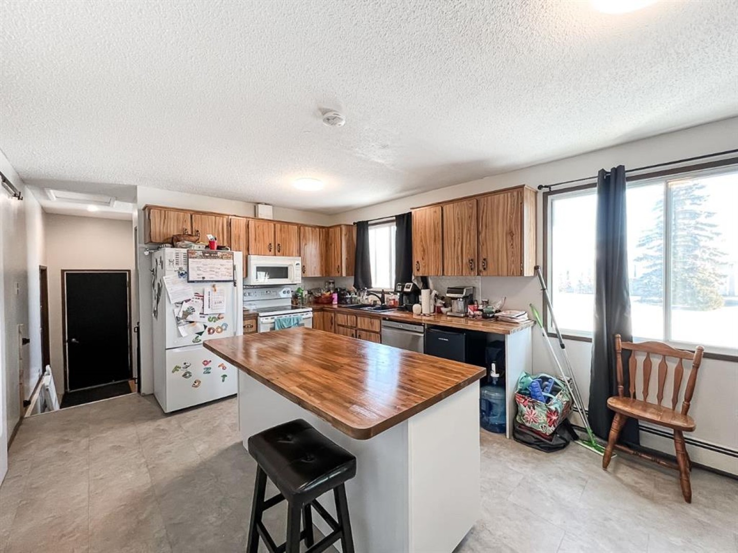 This welcoming 5-bedroom, 2-bathroom home sits on a generous corner lot in Girouxville and truly offers everything a family could want. The open-concept main floor boasts a bright, airy layout with large windows, an eat-up kitchen island, and abundant cabinetry that flows seamlessly into the dining and living areas. Ideal for both everyday living and effortless entertaining. 3 main-floor bedrooms and a 4-piece bathroom provide convenience and comfort, while the primary bedroom offers direct access to the back deck and yard through sliding patio doors. You’ll also appreciate the main-floor laundry and a spacious mudroom-style entrance off the attached garage. The fully finished basement adds incredible versatility, featuring a large rec room, 2 additional bedrooms, a 3-piece bathroom, a flexible bonus room perfect for an office or home gym, and 2 oversized walk-in storage closets complete with built-in shelving. Outside, the expansive lot delivers ample space for outdoor activities, and the back-lane access is perfect for RV parking or extra storage. Move-in ready and packed with value, this home is the perfect fit for a growing family. Book your showing today!
