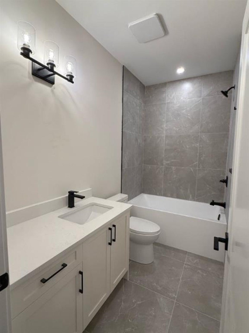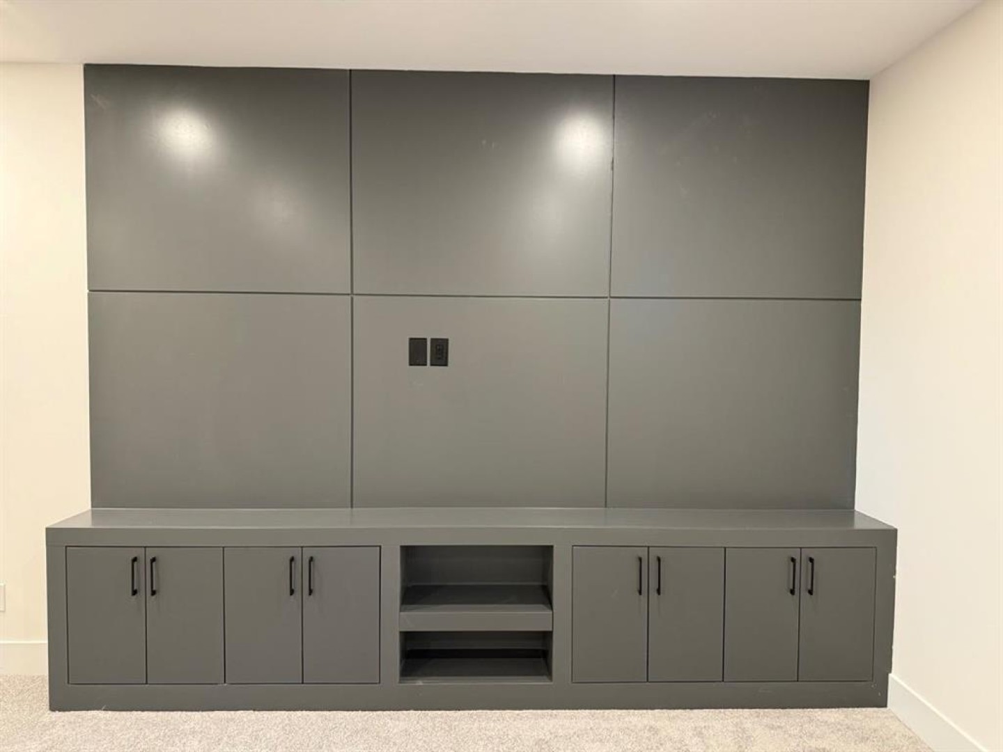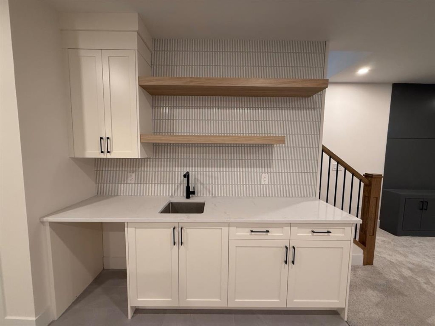Timeless design, modern comfort, and everyday function come together on a quiet tree-lined street in this stunning new home in GLENBROOK. With expansive windows, warm natural materials, and elevated finishes throughout, it’s crafted for family living in one of Calgary’s most established neighbourhoods. Step in from the covered entry to a bright foyer with sight lines across the open main floor, where light oak hardwood carries seamlessly through the principal rooms. The front dining room is anchored by a custom feature wall, setting the tone for the thoughtful millwork found throughout. An elevated powder room greets you upon entering & provides privacy & convenience through a hidden door.