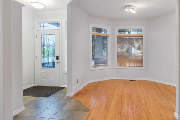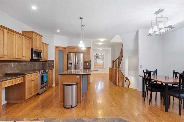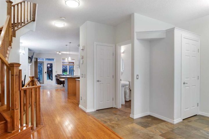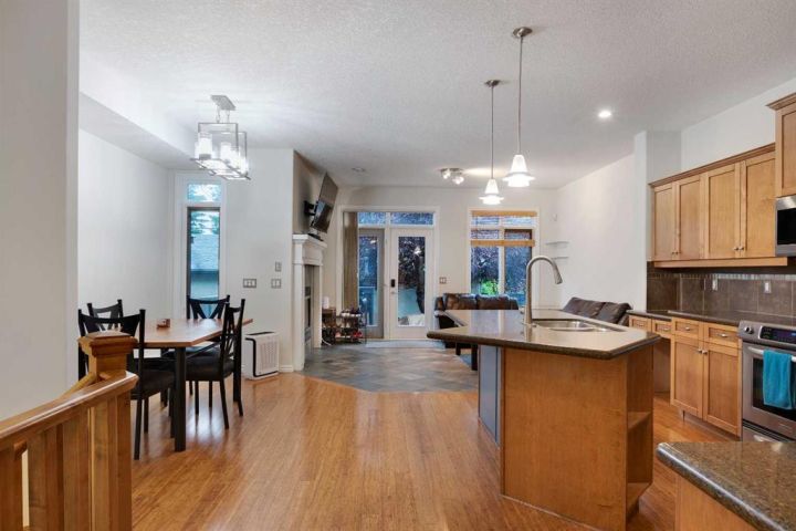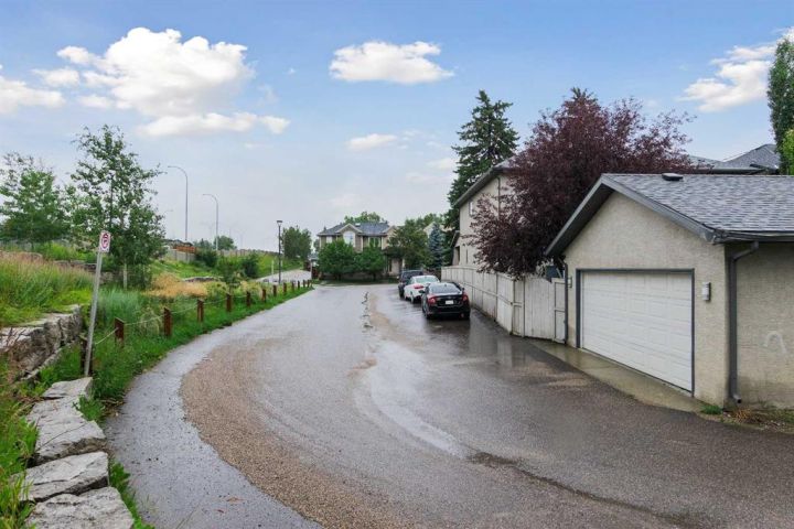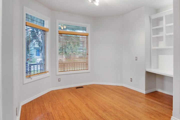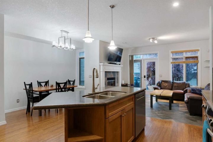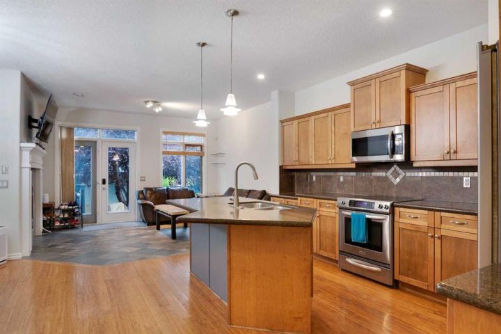 You won’t find a more convenient location, this home truly has it all! Tucked away on a quiet cul-de-sac and situated on a desirable corner lot, this fully finished semi-detached home (with no condo fees) is just steps from restaurants, shops, parks, schools, transit, and offers quick access to Crowchild Trail. The charming stucco and stone exterior, welcoming front porch, and attractive curb appeal make a lasting first impression. Inside, the main floor features a bright, open-concept layout with 9-foot ceilings, rich bamboo flooring, and a cozy gas fireplace. A front den offers flexible space for a home office or reading nook. The well-appointed kitchen boasts maple cabinetry, granite countertops, stainless steel appliances, a built-in workstation, corner pantry, and updated sink and faucet. A convenient half bath completes the main level. Upstairs, a skylight fills the space with natural light. You’ll find a laundry room, a 4-piece main bathroom, and two bedrooms, including a spacious primary retreat with vaulted ceilings, a built-in bench with storage, and a private 4-piece ensuite. The fully finished basement is warmed by in-floor heating and offers a large rec room, full bathroom, and a third bedroom, perfect for guests or additional living space. Comfort features include central air conditioning and central vacuum. Step outside to enjoy the sunny, fenced backyard with a deck and gas line for your BBQ. The insulated double detached garage provides secure parking and additional storage. Recent Upgrades Include: • Hot water tank (2019) • Fridge, dishwasher & range (2018–2020) • Kitchen sink (2020) • Humidifier (2024) • Washer/dryer, kitchen faucet, microwave & main-floor toilet (2025) This move-in-ready home offers comfort, style, and unbeatable convenience. Don’t miss your chance, book your showing today!