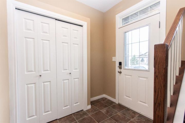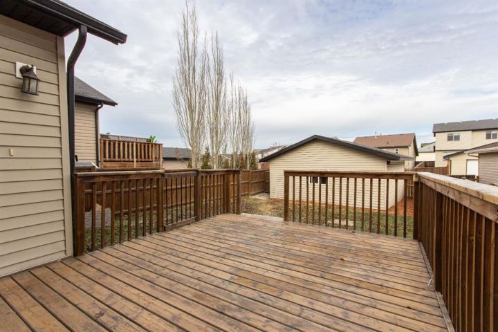 Welcome to this move in ready 2-storey home in the heart of Oriole Park, just steps from a park, playgrounds, walking trails, and access to beautiful Maskepetoon park! This home offers fresh paint throughout, new vinyl plank flooring on the upper level and basement, and a fully fenced yard with a 22x22' detached garage! As you step inside, you're welcomed by low maintenance laminate flooring through the main living space, and the bright, spacious living room is highlighted by a cozy gas fireplace and large windows overlooking the yard. Just off the living space, the kitchen offers maple cabinetry, stainless steel appliances including a brand new fridge, corner pantry, and an island with eating bar for extra seating. The dining space can easily accommodate a large dining table, and offers a convenient garden door leading out to a large deck. Down the hall, a front facing office offers the perfect spot for remote work, and a convenient 2-piece bathroom completes the main floor. Upstairs, you’ll find two nicely sized kids' rooms that share a 4 pce bathroom, and a large primary suite with its own private ensuite and a spacious walk in closet. The fully finished basement adds even more living space with a large rec room, a 4th bedroom, and a 3 pce bathroom with a corner shower. Outside, enjoy a fully fenced backyard and a spacious deck, offering plenty of room for entertaining and relaxing with friends in the summer months. The 22x22' detached garage has convenient back alley access, and is the perfect place to keep your vehicles out of the winter elements. Immediate possession is available, just move in and enjoy!