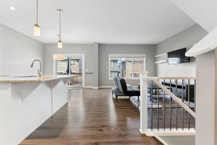 **MOVE IN READY, LIKE NEW** Welcome to your new home in the heart of King's Heights, one of Airdrie’s desirable family friendly communities! Come Fall in love with this stunning, fully finished detached home with over 1,800 square feet of well-maintained living and a fully developed basement. As you step through the front door you are greeted with lots of natural light and laminate flooring throughout. The living room and adjourning dining room provide an inviting open layout that look onto the back deck and fully fenced yard. At the heart of the home is the well-appointed modern WHITE kitchen, featuring stainless steel appliances, gleaming GRANITE countertops, a large central island, tile backsplash, ample cabinetry and walk-in pantry. The home features three well-sized bedrooms, including a primary retreat with a spacious walk-in closet and a full 5-piece ensuite bathroom, boasting dual sinks, a separate shower and a soaker tub . The upper level includes a generous bonus room which is ideal for a playroom, visiting guest, extended family or a home office. Additionally, for your convenience the laundry room is located upstairs with extra storage space. Relax and entertain in the spacious fully finished basement, great for recreation space or media room, well equipped with built-in speakers and a wet bar with a beverage cooler, fantastic for family movie/game nights, out-of-town guests or entertaining friends. Outdoor backyard offers lots of room for family BBQs, playtime, extra storage and camp fires. In the well-planned community of King’s Heights you will have access to nearby schools, parks, ponds, walking paths and an amphitheatre while also having the convenience of Kingsview Market shopping centre only steps away. This home is a perfect balance of style and comfort. Don’t wait, schedule your private viewing today to experience the ultimate living in Airdrie.