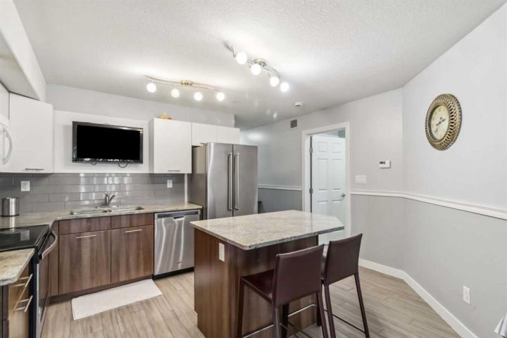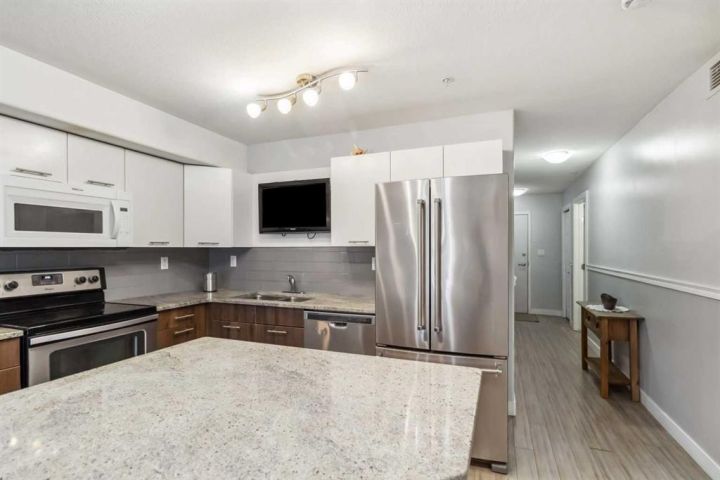 IMMEDIATE OCCUPANCY ON THIS EXECUTIVE YET AFFORDABLE HIGH END ONE BEDROOM PLUS DEN, WITH 2 FULL BATHROOMS AND TITLED UNDERGROUND HEATED PARKING, QUARTZ COUNTER TOPS, CENTRAL A/C, LARGE PATIO TO AN OPEN COURTYARD COMPLETE WITH ALL THE HIGH END FINISHINGS YOU WANT AND PETS ALLOWED. This is an excellent opportunity for those wanting to be close to Keyano College and want quick access to the River Valley, trails, Clearwater River, and downtown core. Situated on the Southwest side of the city, which is the most desirable area of the Downcore, in a beautifully maintained, managed and secure building. This unit is particularly special as a ground floor unit that faces the large courtyard. This is the perfect unit for those with pets to have easy access to the outdoors. Your unit offers a gated patio area that is open to the large courtyard to entertain and watch your children play and have a picnic. Inside of this move-in-ready condo, you have a large entryway that leads to a great living area that includes a spacious kitchen with a large island, two-tone cabinets, white uppers and stylish wood tone lowers. Plus you have quartz countertops, tiles backsplash, eat- up breakfast bar, and stainless steel appliances. The living room offers a great space and those garden doors leading to your patio. This perfect condo continues with a large bedroom with spacious closet and full ensuite large windows giving you tons of natural light. In addition, you have a large den that could be used as a second bedroom or front office. Just off the den is the second full bathroom. This modern and functional condo is complete with in-suite laundry and storage room. To complete this excellent buy you have a heated underground parking stall, can come with the furnishings in the unit and you have on-site gym for property owners. This ground level unit is perfect for those with pets to have quick easy access to the outdoors. This well managed building offers reasonable condo fees that include heat ,water, sewer, garbage, insurance, and common area maintenance. Call today for your personal tour of this move-in-ready and turnkey home.