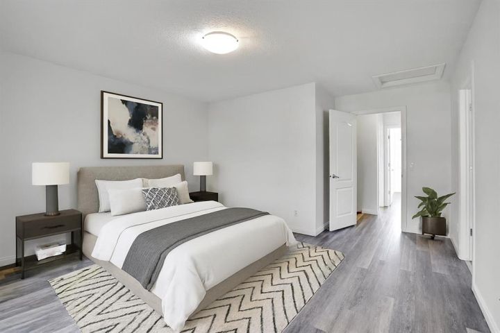 Open house this Sunday Nov 16th 12:00-2:00! Welcome to this beautifully updated 4-bedroom, 4-bathroom end-unit townhouse located in the desirable community of Royal Oak. Perfectly situated on an interior lot backing onto a greenspace, just a short walk away from the LRT station. Step inside and discover an open-concept main floor that features 9 foot ceilings, abundant natural light, and fresh paint throughout. The spacious living area is anchored by a cozy corner fireplace, while the adjacent dining and kitchen spaces are great for entertaining. The kitchen is equipped with a breakfast bar, stainless steel appliances, and plenty of counter space. The main floor also has a flex area that provides an ideal spot for a home office or study area. Upstairs, there is a massive primary bedroom that features a walk-in closet and a private 4-piece ensuite, complemented by two additional generous bedrooms and a full bathroom. Downstairs, the fully finished basement extends your living space with a large family/rec/fitness room, a fourth bedroom, and another full bathroom; perfect for guests or teens. Recent upgrades include a new furnace, hot water tank, and washer/dryer. This home is carpet-free for easy maintenance and already professionally cleaned so it is move-in-ready! Enjoy the convenience of an attached garage and the peace of mind of a well-managed complex with low condo fees. Located close to the Royal Oak Shopping Centre, YMCA, schools, parks, and with quick access to Stoney and Crowchild Trails, this property combines comfort, convenience, and value. Do not miss your chance to own this exceptional townhouse in one of NW Calgary’s most sought-after communities!