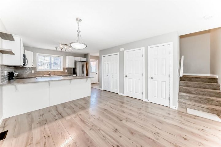 Welcome to this very well maintained 3-bedroom townhouse, offering incredible value and comfort with room to grow — all without condo fees. Whether you’re upsizing, downsizing, or looking for a fantastic investment, this home is ready for you to settle in and enjoy, just in time to have the tree up for Christmas! Step inside to an inviting open-concept main floor, filled with natural light and perfect for everyday living or entertaining. The stylish kitchen features white shaker cabinets, stainless steel appliances, and abundant counter and storage space — ideal for home cooks and busy families alike. Enjoy peaceful evenings on the west-facing back deck, complete with a glass privacy wall. Mature front-yard trees offer shade and privacy, and the convenient storage shed keeps yard tools organized year-round. Upstairs, you’ll find 3 well-sized bedrooms— perfect for kids, guests, or a dedicated home office. The spacious primary retreat accommodates a king-sized bed and boasts a walk in closet plus its own full ensuite for added comfort. Two additional bedrooms and a full 4 peice bathroom are also located on the 2nd floor. The lower level awaits your personal touch, featuring a bathroom rough-in and large laundry area, giving you the opportunity to expand the living space to suit your needs. Beautifully cared for and thoughtfully designed, this property is an exceptional choice for first-time buyers, young families, or anyone seeking a turn-key investment in a wonderful community. Start the new year in your new home — this one is ready when you are! Situated near the stunning walking paths with ravine views. Close to essential amenities, including a medical office, dentist, pharmacy, bakery, gas station, convenience store, and restaurant. The local elementary school (grades K-8) is just a short 5-minute walk away. Don’t miss out on this exceptional home!