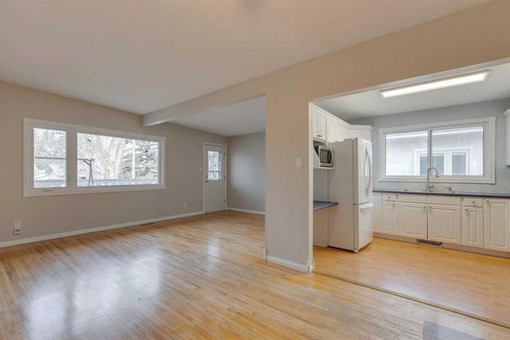xcellent opportunity to live up and rent down or rent up/down. This well-maintained semi-attached home is in a great location and has quality upgrades throughout. New windows; maintained roof with a new membrane in 2009; poured concrete walkways; new base and casing; eaves and soffits. Hardwood floors up, and a large 19x6-foot balcony. The basement can be a self-contained illegal suite with the addition of a furnace and an entry door (RI at present). The main floor furnace has been serviced, and the home has a new hot water tank. Two bedrooms up and one down, two full baths, laundry up and down. Make a great investment in this super home in the trendy neighbourhood of Bowness. Excellent access to all the shopping and services at Trinity Hills, 16 Ave and Stoney Trail. Bowness offers a small-town feel with lots to do. Enjoy Bowness Park and its famous lagoon, walking pathways along the Bow River, public washrooms, firepits and BBQ stands.