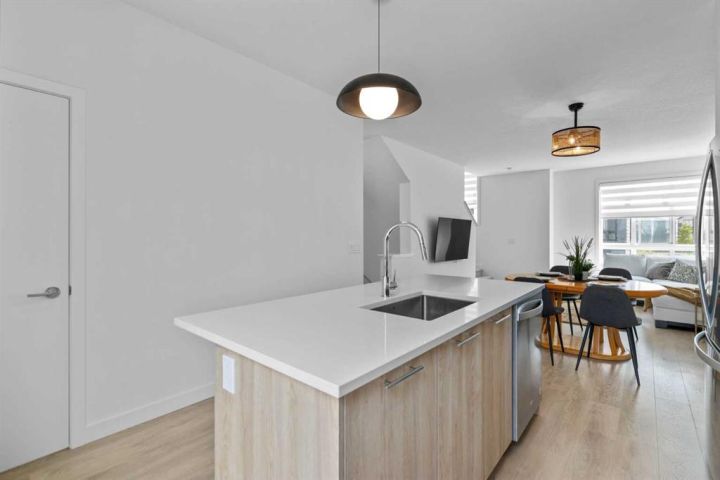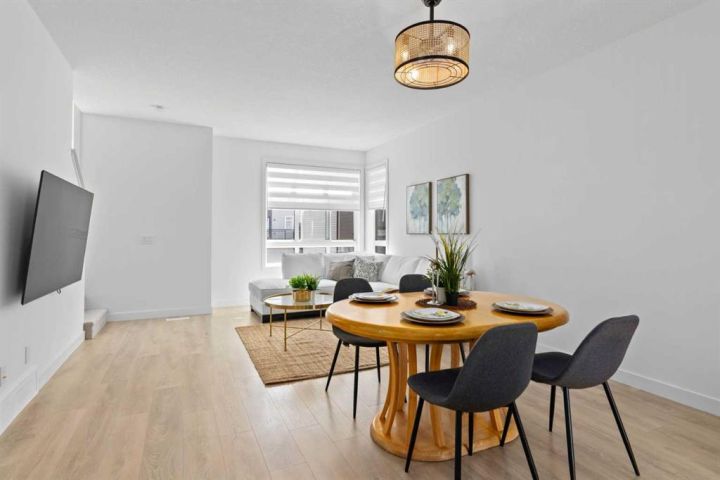 END UNIT | 3-BED | 2.5 BATH | ATTACHED DOUBLE GARAGE | WINDOW COVERINGS INCLUDED | LOW CONDO FEES | End unit townhome offering more natural light, fewer shared walls, and extra privacy in the southwest community of Belmont. Inside, you'll find a bright, modern layout with upgraded light fixtures, wide plank flooring, and 9-foot ceilings that create an open and airy feel throughout. The kitchen features quartz countertops, stainless steel appliances, a full pantry, and a large island that flows easily into the dining area. Step out onto the spacious balcony with a gas line, perfect for summer grilling. Upstairs, all three bedrooms are well-proportioned, including a sunlit primary suite with a walk-in closet and private ensuite. WINDOW COVERINGS are included and the double attached garage adds everyday convenience. Located in Goodwin by Anthem, this townhome is part of a thoughtfully designed development with future amenities like a picnic area, firepit, and dog run. Belmont is a family-friendly community with parks, playgrounds, nearby schools and future school sites, and easy access to Macleod Trail, Stoney Trail, and the upcoming Belmont Field House and Library. View the 360° tour and book your showing today before it's gone!