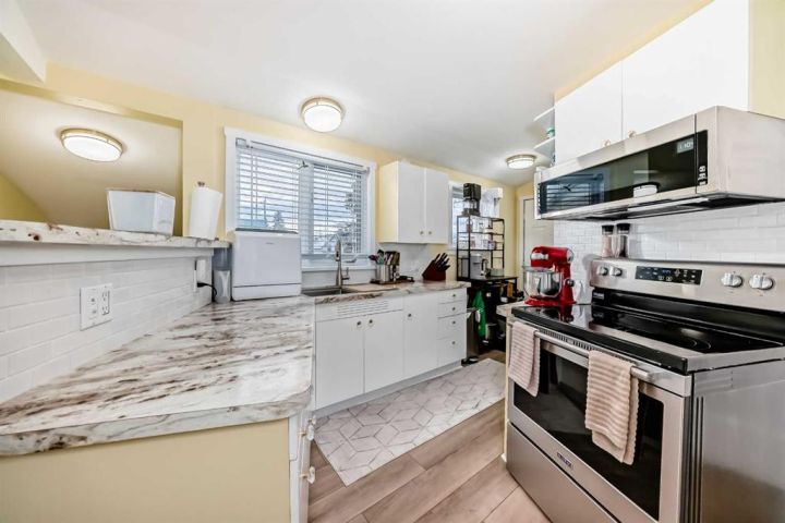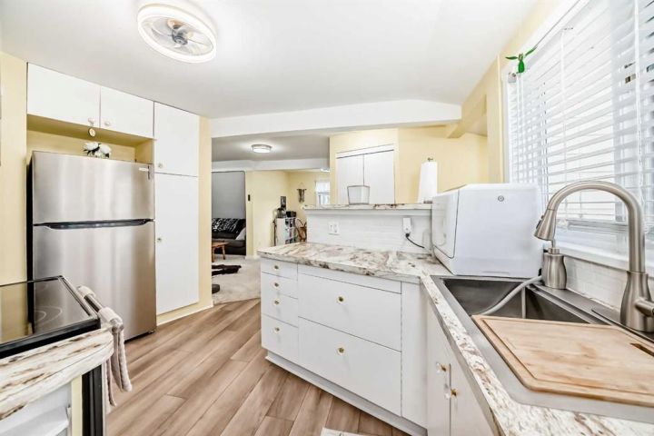 Welcome to this bright and inviting character home on Main Street in Bowden — a charming up-and-down DUPLEX perfectly positioned for small-town living with easy access to the QEII Highway, just minutes from both Red Deer and Calgary. Built in 1926, this home carries a unique piece of Bowden’s history, with the garage once serving as the original Bowden Fire Hall and the main floor formerly home to a store and barber shop. Extensively RENOVATED in 2011, both the home and GARAGE now blend timeless character with modern comfort and solid craftsmanship throughout. This distinctive property features two self-contained one-bedroom units, each offering its own style and comfort — ideal for extended family living, or a live-and-work setup. THE UPPER UNIT ( B) offers just over 720 sq. ft. of bright, spacious living, FULLY RENOVATED IN 2024 to showcase modern finishes and a warm, contemporary aesthetic. It includes a new hot water tank (installed in November 2025), a large 10x15 private East facing deck, perfect for morning coffee or evening relaxation with panoramic views of the town and surrounding countryside, one bedroom, and one full bathroom. Off the back deck, you can see the mountains to the West on a clear day. Thoughtfully designed with an open-concept layout, the space captures abundant natural light while maintaining its charming character. THE LOWER UNIT (A) features approximately 890 sq. ft. of comfortable, accessible single-level living. It is completely WHEELCHAIR accessible, with a barrier-free kitchen and bathroom, including a pull-up stove, lowered countertops, and a roll-in shower with open flooring and drain system. Cozy and well-maintained, unit offers one bedroom, one bathroom, and a functional, inviting layout designed for ease and comfort. Each unit has two separate entrances, its own furnace and hot water tank, ensuring privacy and independence. A shared laundry area with a new washer and dryer is conveniently located on the main floor, while the basement offers additional storage. The generous 50' x 120' lot is enhanced with mature trees, gravel landscaping, and partial fencing for a low-maintenance yard. The double detached garage — once the town’s fire hall — provides ample parking and space for RV storage, and the durable METAL ROOF ensures minimal upkeep and long-term value. An interior doorway connects both units, allowing flexibility to use the home as one large family residence or maintain it as two separate units. Both units are currently fully rented, making this property a fantastic turnkey investment opportunity. Whether you’re seeking a residence with a low-maintenance rental property, this character home stands as a true gem in the heart of Bowden — rich in history, charm, and opportunity.
