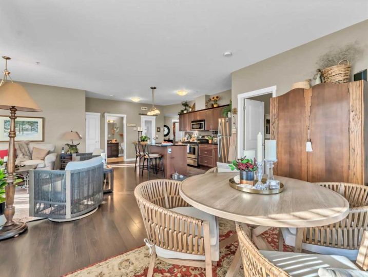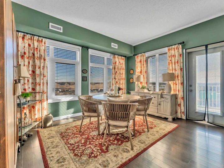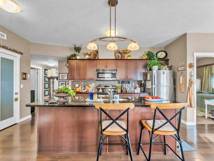 #121 19 Terrace View NE – Modern Corner Condo with River Valley Views. Enjoy easy living in this bright and spacious 2-bedroom, 2-bathroom corner unit condo with beautiful views overlooking the river valley. This well-cared-for home has a comfortable open layout that feels both modern and welcoming. The kitchen is stylish and functional, featuring granite countertops, stainless steel appliances, and a large island that’s perfect for hosting guests or enjoying a casual meal. The space flows into the dining area and open living room, where large windows fill the home with natural light. Step out onto your private covered deck—an ideal spot for morning coffee, evening relaxation, or summer barbecues. The primary bedroom offers great storage with a walk-through closet leading to a private 3-piece ensuite. A second bedroom and full 4-piece bathroom provide flexibility for guests, a home office, or hobbies. Convenient in-suite laundry and an underground parking stall add to the appeal. This pet-friendly building (with some restrictions) has no age limit and offers true worry-free living—condo fees cover all utilities and maintenance, including heat, water, electricity, and more. Condo Fees: $457/month Include: Common Area Upkeep, Electricity, Heat, Grounds Maintenance, Parking, Reserve Fund, Sewer, Snow Removal, Trash & Water. A wonderful opportunity to enjoy comfort, convenience, and stunning views—all in one great location.
