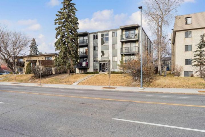 Wow. Wow. Wow! This amazing 1 bedroom apartment condo is a superb buy in Shaganappi in a prime SW location close to transit, downtown, the 17th Avenue Strip, Mount Royal University, parks and other fabulous SW amenities. This elevated unit is one of the few in the building with its own balcony. Awash in sun with a fantastic sunny south exposure this superb little unit features an open galley kitchen with white cabinets and stainless steel appliances, upgraded laminate flooring, a spacious separate dining room and large living room plus a good sized bedroom and spacious closet and is complimented by a full 4 pc bath. This delightful unit also boasts its own designated off-street parking stall, common laundry on the 2nd floor and is clean, clean clean. At this amazing price even at 5% down carrying costs could easily be in the order of $1200/month for mortgage, taxes and condo fees, depending on your interest rate and mortgage term. Heat and water and sewer are included in the condo fee. Vacant and ready for a quick possession, don't miss viewing this incredible property today.