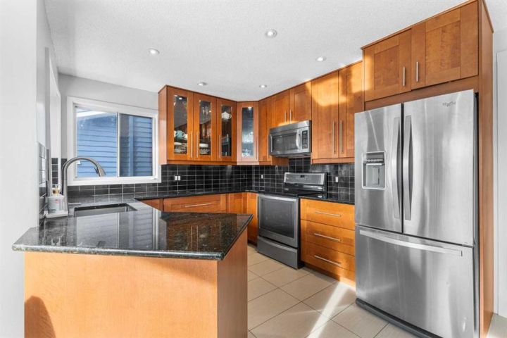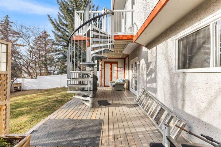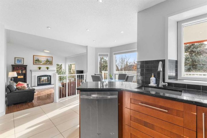 OPEN HOUSE SUNDAY, NOVEMBER 16TH FROM 2-5:30 PM. Welcome to this well-maintained and thoughtfully updated 4-level split home nestled in the heart of Scenic Acres. Offering over 1,600 sq ft above grade plus a fully developed basement with an illegal suite, this property delivers exceptional versatility. The main and upper levels feature vaulted ceilings, hardwood, ceramic tile, and carpet flooring. A main floor living room provides a perfect space for gathering with family & friends. The bright and functional kitchen—renovated in 2012—boasts granite countertops, ample cabinetry, and a cozy breakfast nook, flowing effortlessly into the formal dining room and family room with cozy wood burning fireplace. The primary bedroom includes a private 3-piece ensuite, while two additional bedrooms share a full 4-piece bath. The lower level offers a spacious den, and the illegal suite includes a second eat-in kitchen, large living/dining area along plus a 4-piece bathroom — ideal for extended family or guests. Other notable features include central air conditioning, a furnace that was replaced approximately three years ago plus new windows at the back of the home, offering peace of mind for years to come. Outside, enjoy a sunny fully fenced and landscaped southwest yard with both deck and patio spaces—perfect for outdoor entertaining. The double attached front garage provides secure parking and storage. Located in a quiet, family-friendly neighborhood with easy access to parks, playgrounds, schools, shopping, golf, and extensive walking/bike paths, this home combines comfort and convenience.