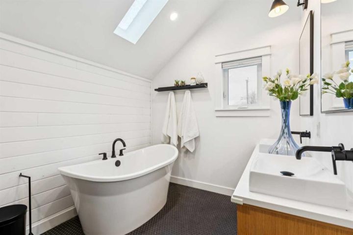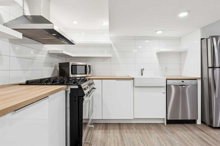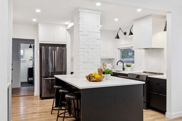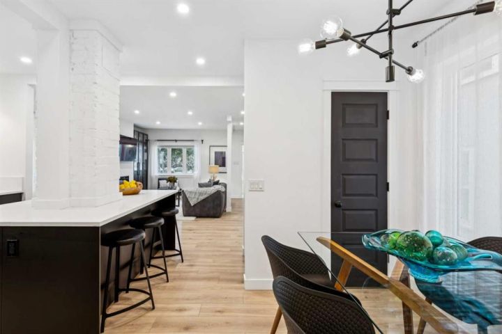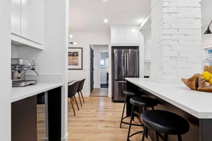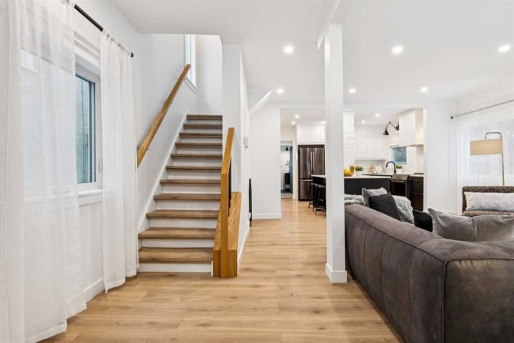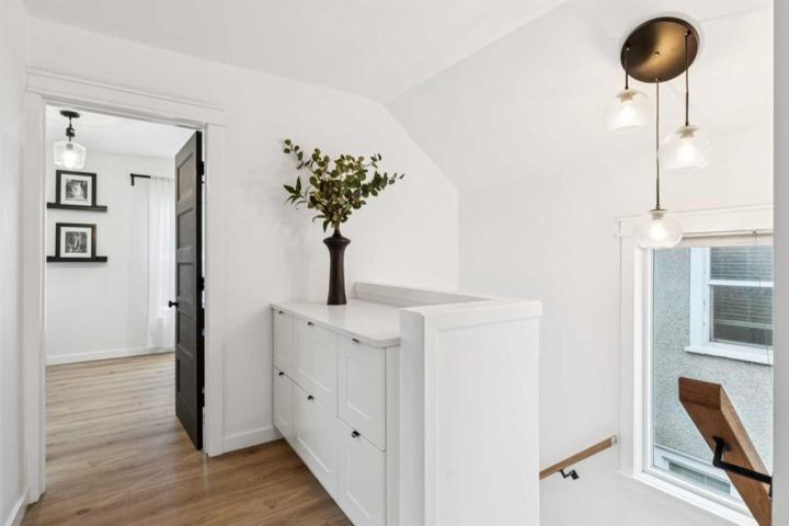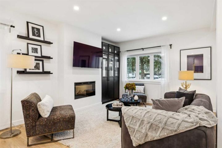 OPEN HOUSE SUNDAY DEC 7th 1-3pm. BEAUTIFULLY RENOVATED CHARACTER HOME in a cul-de-sac location across from a green space with tot lot and just steps from the Inglewood 9th Avenue Village. 33’ wide lot. Thoughtfully modernized, the home perfectly blends original charm with modern comfort, safety, and efficiency. Also features a TRIPLE GARAGE and a LEGAL SUITE. Major updates in recent years include new electrical, mechanical, and plumbing systems, a new roof and all new windows and doors in both the house and garage. The front foyer welcomes you with built-in seating, storage and a glass door to the main hall. Sunlight flows throughout the comfortable and easy-to-enjoy open-plan living spaces. The inviting living room encourages relaxation around the electric fireplace and TV with a custom media cabinet providing discreet storage for books, games, and toys. The gorgeous kitchen is designed for everyday living and entertaining family and friends. It showcases sparkling quartz counters and backsplash and black stainless-steel appliances with extensive cabinetry and workspace. The large island doubles as a breakfast bar and incorporates the home’s original brick chimney for a touch of history. Completing the main level are a luxurious bath with shower, a convenient laundry room with storage, and a charming under-stair nook—ideal for a kids’ play space or cozy pet corner. Upstairs, you'll find three bright and spacious bedrooms, including the primary retreat with room for a king bed, dual walk-in closets and peaceful park views. The stunning 5-piece bathroom includes heated floors, a skylight, a double vanity, a freestanding tub and a separate walk-in shower. The legal basement suite offers flexibility—use it as additional family living space or for rental income. It features its own entrance, Roxul soundproofing insulation and a separate heating system. Note the large living room with TV, bright kitchen with stainless appliances (gas stove and “farmhouse” sink), bedroom and stylish bathroom with in-floor heating. An HRV unit together with the electric heat keeps the space fresh and comfortable. The private, fully fenced backyard is flat with mature landscaping. The insulated and heated triple garage offers ample workspace thanks to built-in shelving. Neighbourhood amenities include tennis courts, scenic river pathways, the bird sanctuary, and, of course, the unique collection of shops, restaurants, cafes, fitness and services of the 9th Avenue Village. Schools and transit are also close by.