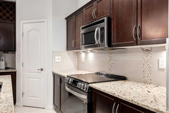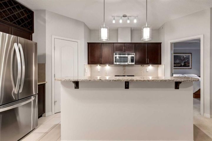 WELCOME to this IMMACULATE 959 SQ FT TOP-FLOOR Home offers a FANTASTIC OPEN-CONCEPT DESIGN, Nestled in CRYSTAL GREEN with 2 BEDROOMS, 2 FULL EN-SUITE BATHROOMS, IN-SUITE LAUNDRY, + BOTH an OUTDOOR PARKING STALL + an UNDERGROUND TITLED PARKADE STALL - an EXCEPTIONAL VALUE in this LOCATION!!! Situated in the PREMIER PENNCROSS building, residents enjoy ELEVATORS, FITNESS FACILITIES, + LAKE ACCESS through the Crystal Shores HOA, + the CONVENIENCE of being just minutes from GOLF, PARKS, SCHOOLS, + AMENITIES. Step inside to a WARM + INVITING layout featuring FRESH PAINT throughout + A FUNCTIONAL, WELL-APPOINTED KITCHEN featuring STAINLESS STEEL APPLIANCES, a GRANITE-TOPPED ISLAND with BREAKFAST BAR SEATING, a SIL-GRANITE SINK, GARBURATOR, TILE BACKSPLASH, + PENDANT LIGHTING. This space is completed by a CORNER PANTRY + RICH BROWN CABINETRY that provides excellent storage + a cohesive, polished look. The open Dining + Living Room areas are perfect for ENTERTAINING FAMILY + FRIENDS or RELAXING after a long day. Large NORTH-FACING WINDOWS bring in soft NATURAL LIGHT while keeping the space COOL + COMFORTABLE all year long. From the living area, step onto the COVERED PATIO - complete with a GAS LINE for BBQs, ideal for morning coffee or evening unwinding. The PRIMARY BEDROOM is a PEACEFUL RETREAT with DOUBLE CLOSETS featuring BUILT-IN ORGANIZERS + a PRIVATE 3 PC EN-SUITE with TILE FLOORING + a WALK-IN SHOWER. On the opposite side of the unit -offering ADDED PRIVACY - you’ll find the 2nd BEDROOM, which includes a WALK-THROUGH CLOSET with BUILT-INS + DIRECT ACCESS to the 4 PC MAIN BATHROOM. This thoughtful split-bedroom layout is perfect for guests, roommates, extended family, or a home office setup. This WELL-MAINTAINED, MOVE-IN READY HOME offers an INCREDIBLE OPPORTUNITY for FIRST-TIME BUYERS, DOWNSIZERS, INVESTORS, or ANYONE looking for a BEAUTIFUL, SECURE, + HIGHLY FUNCTIONAL CONDO with OUTSTANDING AMENITIES + TWO PARKING OPTIONS. This location provides EASY ACCESS to Crystal Green Golf Course (3 MINS) + Crystal Shores Lake amenities (2 MINS). Schools are a QUICK 1 MINUTE Drive, including Holy Trinity Academy + Meadow Ridge School, with the FULL RANGE of Shopping + Services in North Okotoks (3–5 MINS) offering MAJOR Retailers + everyday conveniences. With QUICK connections to 32 Street (2 MINS), + Highway 2A (4 MINS), commuting throughout town or into Calgary (14 MINS) is QUICK + EASY. This is a LOCATION that truly has it all. Don’t miss out on this FANTASTIC PROPERTY - BOOK your PRIVATE VIEWING TODAY!!!