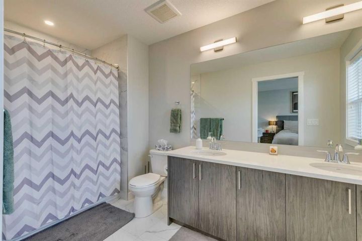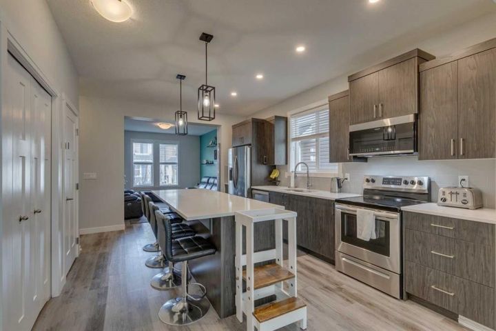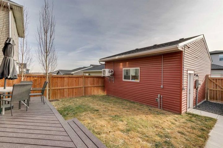 OPEN HOUSE SAT NOV 15 1-3PM. Fully upgraded and lovingly maintained, this home features NINE foot ceilings (main floor), quartz countertops throughout and a side entry to the fully developed basement which features a cozy family room with wet bar, a den/office, a bedroom, 4-piece bathroom and could be easily modified to make a fully self-contained suite. You will love the open concept main floor plan. Upstairs, the master bedroom has a spacious ensuite, walk in closet and the additional bedrooms are big enough for your growing family. The home features a SOLAR energy system and CENTRAL A/C! The sunny SOUTH-facing deck and back yard rounds out this perfect home. Enjoy the convenience of your OVERSIZED detached double garage featuring HEAT AND COOLING and a separate panel. Located in Airdrie’s desirable South end, you’re just STEPS from Northcott Prairie School, parks, tennis and basketball courts, and an off-leash dog park. Quick access to Calgary makes commuting simple, while everything you need is right at your doorstep.