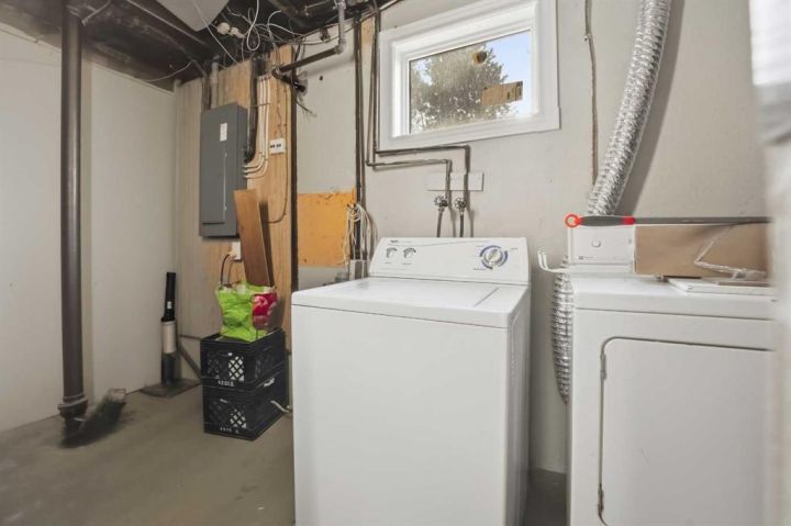 Downstairs, the lower level offers excellent functionality with large windows, a comfortable bedroom, full bathroom, and a flexible living area. A dedicated side entrance leads directly to this space, paired with shared access to the laundry area, giving the lower level a sense of privacy that works well for extended family, older teens, guests, or multi-generational living arrangements.