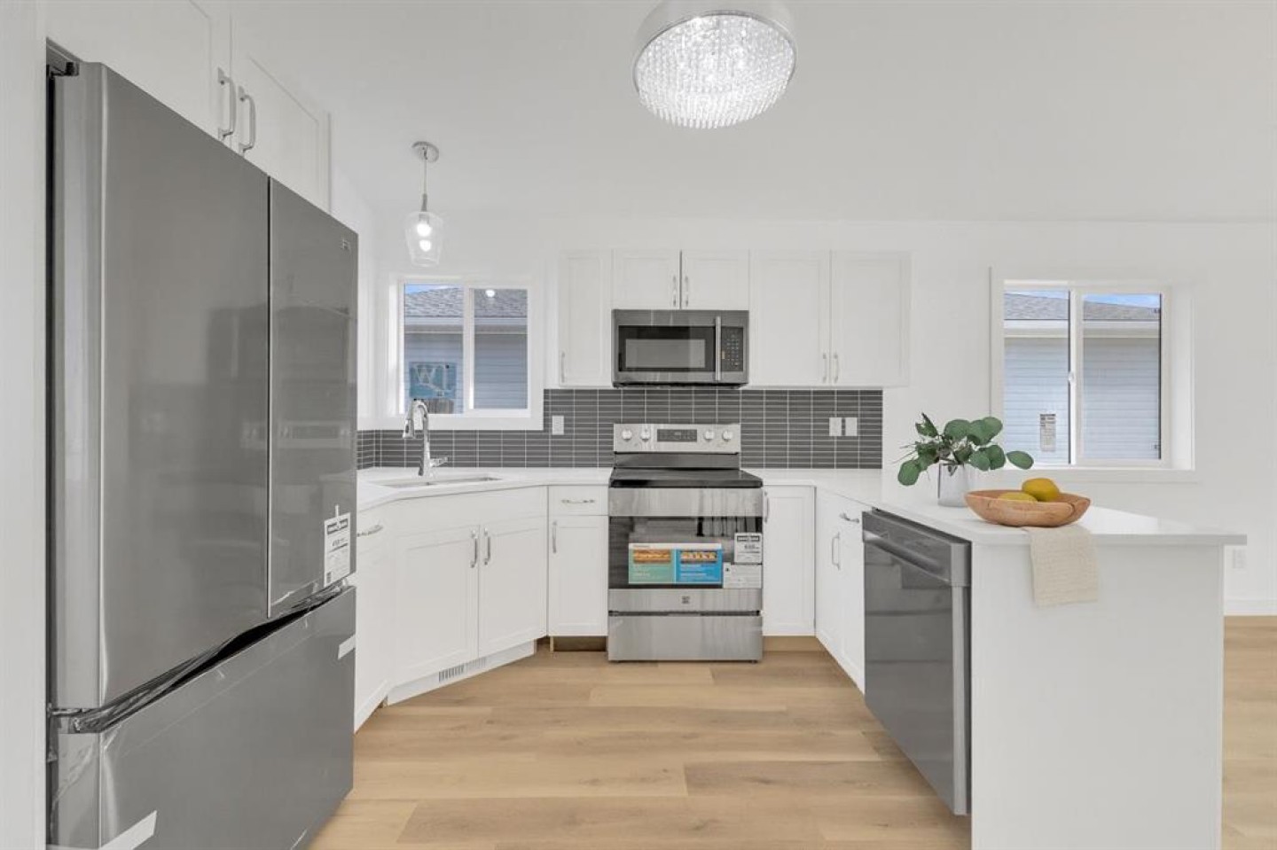 Looking for peace of mind and the comfort of a brand-new home in a quiet small-town setting? This beautiful new build might be the perfect fit! Located just minutes to Gull Lake and only a short drive to Lacombe, this home delivers all the small-town charm you're after - paired with the benefits of a modern home and new-home warranty. The main floor offers 3 generous bedrooms, including a large primary suite with a full ensuite, along with a bright and inviting open-concept kitchen and living room. The home feels great from the moment you pull up with GREAT curb appeal and a charming front porch and new sod. Inside enjoy modern finishes, tons of natural light, quartz countertops and premium LVP flooring throughout. A spacious 14x11 rear deck sits just off the back door overlooking a yard with plenty of space for your future garage build. The basement is ready for your ideas - high ceilings, egress windows, HE Furnace and HRV system, and a roughed-in future bathroom provide the perfect foundation to build additional living space and equity. The community of Bentley has so much to offer; including shopping, schools, grocery and essential amenities. Its a wonderful place to call home!