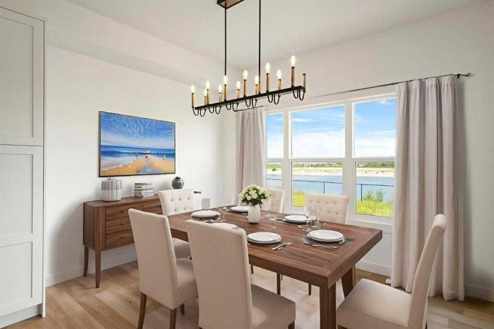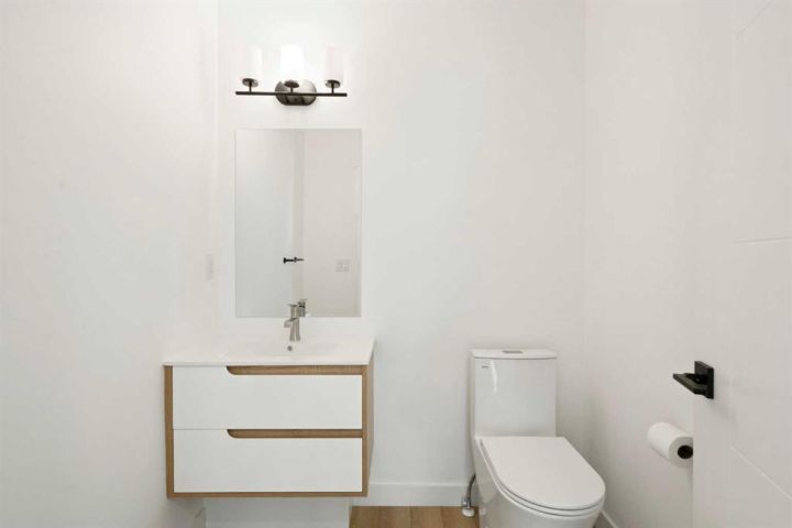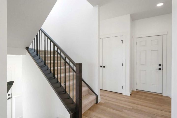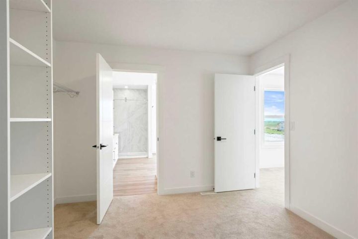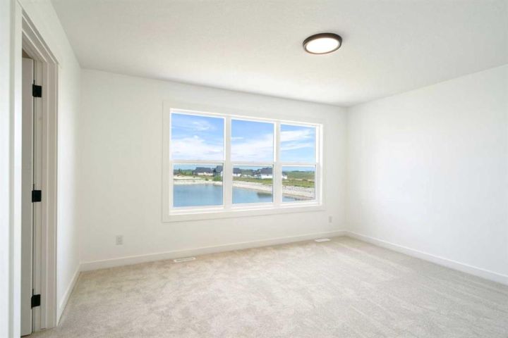 Modern Duplex in Lyalta with Scenic Views Welcome to this stunning, newly built duplex on a large lot in the peaceful community of Lyalta, Alberta. The sleek grey exterior with a striking black accents & roof give this home a contemporary look, while the bright, airy interior featuring white walls, soft cream carpets create a warm and inviting interior atmosphere. The open-concept main floor is designed for both comfort and style. The kitchen boasts stainless steel appliances, including a cooktop, refrigerator, microwave, wall oven and dishwasher. Ample white cabinetry on walls plus island provides plenty of storage, and the adjacent dining area offers a lovely view of the reservoir ponds behind the house! The spacious living room is centered around a stunning electric fireplace, creating a welcoming space for relaxation and entertaining. The entryway features a private office, a convenient 2-piece powder room, and a generous closet for extra storage. The two-car, insulated, and drywalled garage offers easy access and additional storage options. Upstairs, you’ll find three generously sized bedrooms, each filled with natural light thanks to large windows. The primary bedroom is a true sanctuary, with a spacious walk-in closet and a luxurious 5-piece ensuite featuring his-and-her sinks, a stand alone bathtub, walk-in shower, and a private toilet. Enjoy a tranquil view of the water from your bedroom every day. The two additional bedrooms share another beautifully appointed 5-piece bathroom, and all three rooms are conveniently located near the upstairs laundry room and a cozy second family room. The full-sized, unfinished basement is ready for your personal touch, with a rough-in for a bathroom and endless possibilities for future expansion. This home features quality materials throughout, such as solid core doors, upgraded carpet and fiber cement siding. Located just a short walk from a local golf course, this home offers the perfect combination of modern living and natural tranquility. Come see this beautiful duplex for yourself and discover all it has to offer!