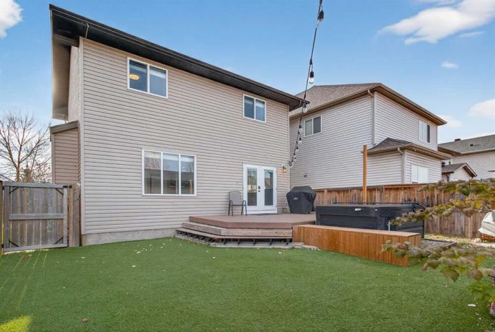 This wonderful 2 Storey home in the heart of McKenzie Towne's Elgin Village offers over 2,000 sq ft of developed space, blending charm, comfort, and practicality. Inside, the main floor features a flexible office/bedroom and a convenient 2-piece bathroom. The thoughtful kitchen layout, with a central island and stainless-steel appliances, transitions into the open-concept dining and living room. The upper level includes three bedrooms, including a primary suite complete with a 4-piece ensuite and a walk-in closet. Relax in the fully developed basement, featuring a generous rec/theatre room, a wet bar, wired architectural surround-sound speakers, a bedroom, and a 3-piece bathroom. The home boasts amenities such as a dedicated laundry room, central air conditioning, a continuous hot water system, and a Kinetico water softener. Enjoy the outdoor space with low-maintenance turf grass, a composite rear deck, and a relaxing hot tub. The oversized 30' x 26' heated and insulated garage features a 9 ft ceiling with additional storage loft, ideal for hobbyists or extra storage needs. The location is perfect for families and professionals, with McKenzie Highlands School nearby, beautiful bike paths and parks, access to McKenzie Towne Centre, and South Health Campus.