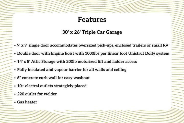 220 Volt Wiring, Alley Access, Garage Door Opener, Garage Faces Rear, Heated Garage, Insulated, Oversized, Plug-In, Triple Garage Detached
