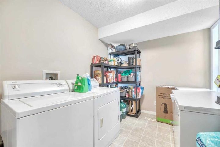The main floor includes two comfortable bedrooms, a full 4-piece bath, and one of the largest laundry rooms you’ll find in a condo—complete with incredible storage.