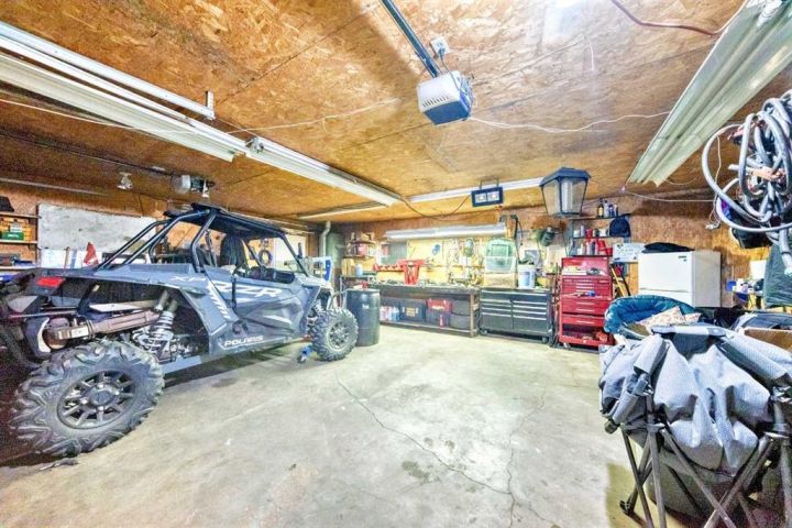 A 10x24 attached breezeway leads into a spacious 26x24 heated double garage, complete with its own fuse box. Step outside to enjoy a lovely patio overlooking the beautifully landscaped yard. There’s ample room for RV parking with convenient side alley access.