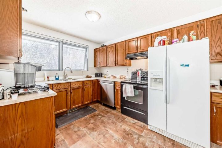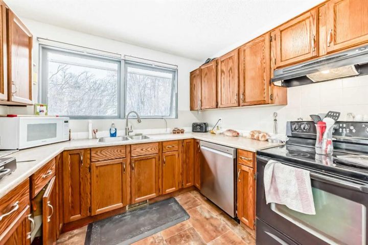 The home features newer flooring and some updated shingles. You’ll never run out of hot water with two hot water tanks, and the property includes two stoves and two fridges. The fully developed basement includes a kitchenette and is currently suitable as a rental space; however, it is not a legal suite.