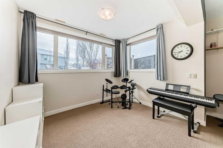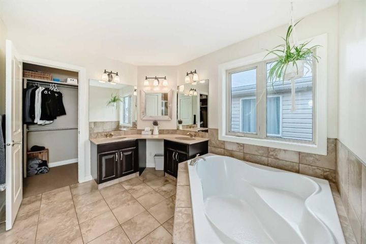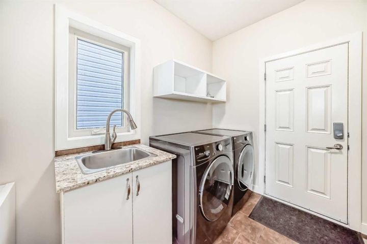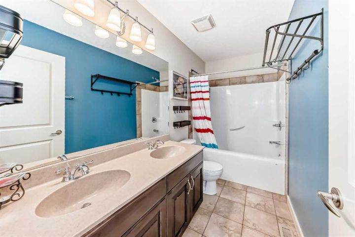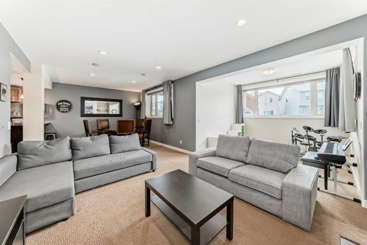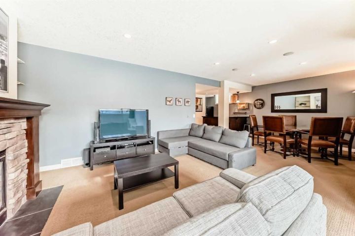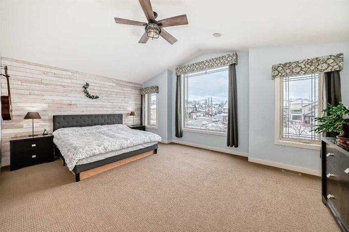 Welcome to this BEAUTIFULLY MAINTAINED custom Jensen-built home tucked into, a quiet, friendly cul-de- sac in the coveted Lower part of Sunset Ridge- a two time Best seller community. Step through the tall, light- filled entry where an expansive window opens the entire space. The main floor unfolds with an open, flowing layout surrounded by vast floor-to ceiling windows and 9-ft ceiling ceilings that fill the room with natural sunlight from morning thru evening. The kitchen features granite counter tops, a raised eating bar and spacious workspaces. From the kitchen a large walk-thru pantry with abundant shelving leads to a tucked-away mudroom and laundry area. The living room is anchored by a cozy gas fireplace and wide south-facing vistas towards the backyard. A dedicated main-floor office / formal dining room and a 2 pce bathroom completes the main floor.Upstairs, FOUR generous bedrooms offer remarkable versatility. The custom primary suite is a true retreat with tall vaulted ceilings, oversized windows framing its sunrise views. The ensuite includes a corner soaker tub/walk-in closet with smart built-ins. The additional bedrooms easily accommodate queen beds. A 5-pce bathroom completes the upper level. Epic mountain views from the back bedrooms. The professionally finished Daylight Lower level bright and open thanks to oversized windows and 9 ft ceilings. This level includes a generous wet bar with granite counter tops, additional bedroom / 4 pce bathroom. The large family room for entertainment with a gas fireplace. Double attached garage. SPACIOUS YARD. Step outside to over 400 sq ft of deck space, complete with a beautiful wooden pergola, the perfect vantage point for sunsets, mountain silhouettes, and family gatherings. The landscaped, gated yard features mature trees / a Rundle Stone Pad for a firepit. A PRIZED + PRIME LOCATION, with immediate access to Hwy-22 /Easily walk or cycle to the Ranchehouse paths and even Glenbow Pathway system/ playgrounds / outdoor fitness, and the upcoming community centre. This home EXCEPTIONAL location puts it walkable to Ranchview school (K-8) St Timonthys High School and the 6 acre pond, park and paths. Steps up the street you have a cozy community hub with a daycare/country market, pub, gas station, wine & spirit store, pharmacy, dental, medical services. This home is priced to sell.