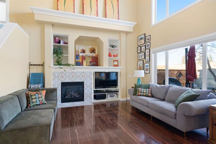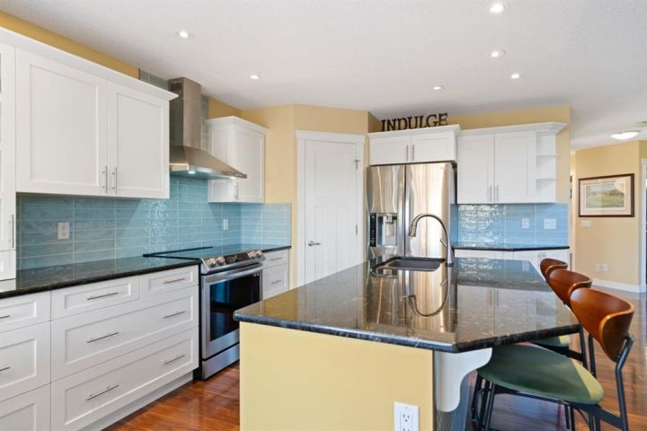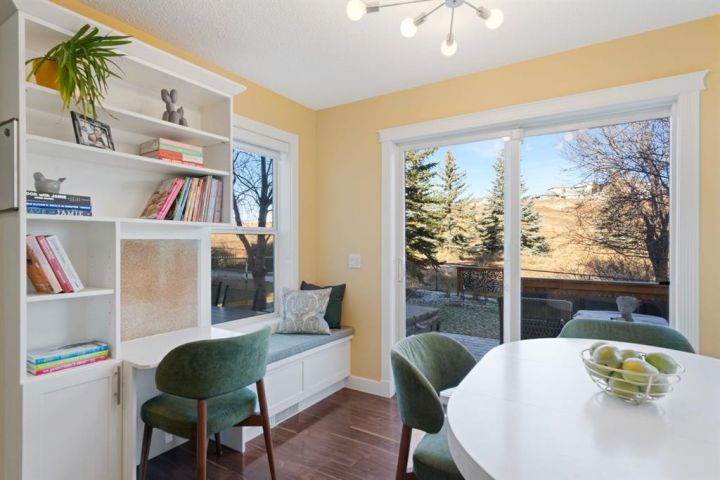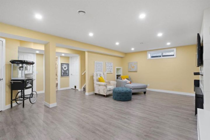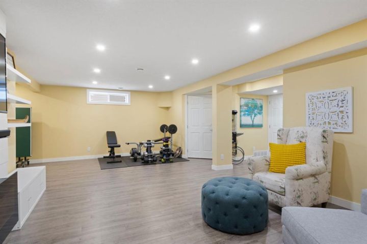 Welcome to 27 Gleneagles Terrace, an inviting, beautifully updated home backing directly onto the rolling fairways of the GlenEagles Golf Course. Thoughtfully designed with sun-filled living spaces and charming character details throughout, this 2-storey offers over 2,800 sq ft of finished living space in one of Cochrane’s most sought-after communities. The main floor features a bright front office with custom built-ins, a welcoming foyer with a bold statement door, and a spacious living room with soaring ceilings, large windows, and a feature fireplace framed by stylish tile and built-ins. The refreshed kitchen is both functional and eye-catching, showcasing crisp white cabinetry, granite counters, a centre island with seating, stainless steel appliances, and a modern tile backsplash. The dining area enjoys peaceful views of the golf course and easy access to the deck. Upstairs, the primary suite overlooks the treed landscape and features a window bench, built-in shelving, a walk-in closet, and a serene 5-pc ensuite. Two additional bedrooms and a full bath complete the level. The fully developed basement is perfect for family living, offering a large recreation room with a sleek fireplace feature wall, media area, gym space, and ample storage. Step outside to your private backyard oasis, where mature trees create a natural buffer and the hot tub provides the perfect spot to relax while watching the wildlife pass by. This is truly a great settings in Glen Eagles, quiet, scenic, and connected to Cochrane’s extensive pathway system. Beautifully maintained and move-in ready, this home combines comfort, style, and an unbeatable location. Don’t miss your chance to live on the golf course in Glen Eagles!