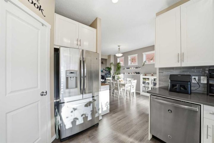 Original owner, centrally located in the 4-season community of Auburn Bay away from all the traffic noise but walking distance to schools, Auburn Station and transit just outside a playground zone! A quaint North facing front porch offers access into the main floor boasting 9' ceilings with a tiled foyer and front lifestyle room. Laminate flooring stretches from the front to the back of this open plan with added transom windows over the center dining area. The rear of the home has a garden door to the South exposed backyard which comes fenced, landscaped and with your own double detached garage. The corner kitchen has classic white extended cabinets, a full set of stainless-steel appliances, quartz counters, soft close mechanics, a backyard window over the sink and a plethora of storage and prep space. Completing this level is a 2-peice bath and side stairs to the lower basement. The upper plan has room for all with 2 back kid's bedrooms their own tiled 4-peice bath with a counter height storage vanity, tiled floors and tub surround with added tile accents. Enjoy the convenience of an actual upper laundry room with extra space to move. The primary bedroom is situated at the front of the home and comes complete with a walk-in closet and tiled 3-peice en-suite bath offering a full-size shower, cabinets and drawers in the counter height vanity. An un-touched basement has the perfect layout for any future development with space for a 4th bedroom, storage, a recreation room and a 3rd full bath. Presented in pristine condition, this is the plan, location, community for any growing families needs!