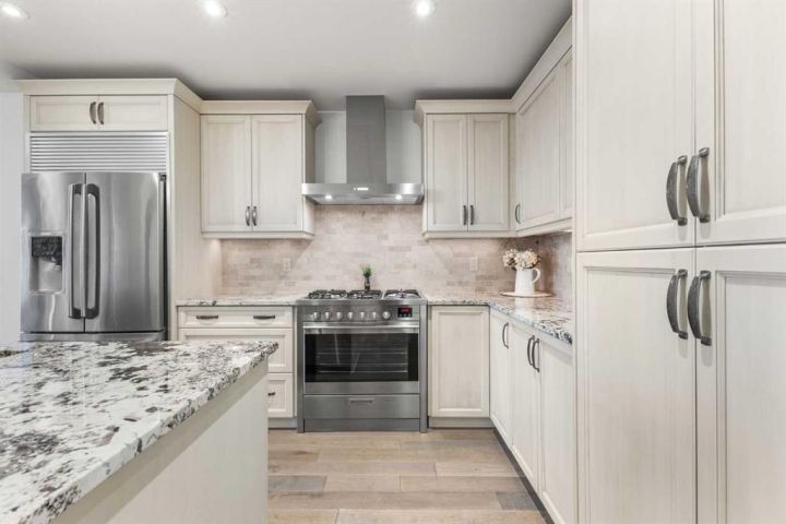 Inside, the home feels calm, bright, and inviting. Large windows frame lush greenery and gentle river views, while the open-concept design creates a seamless flow between the living area, dining space, and gourmet kitchen. Outfitted with granite countertops, built-in appliances, a gas range, and an elegant island, the kitchen is perfect for cooking, hosting, or simply enjoying a quiet evening at home.