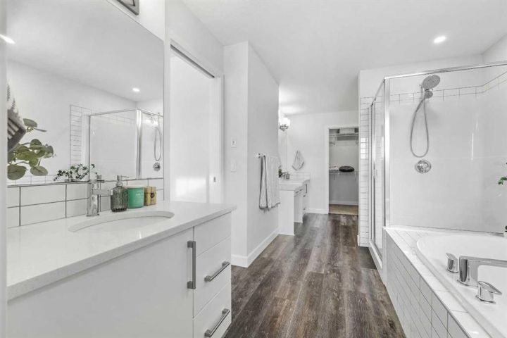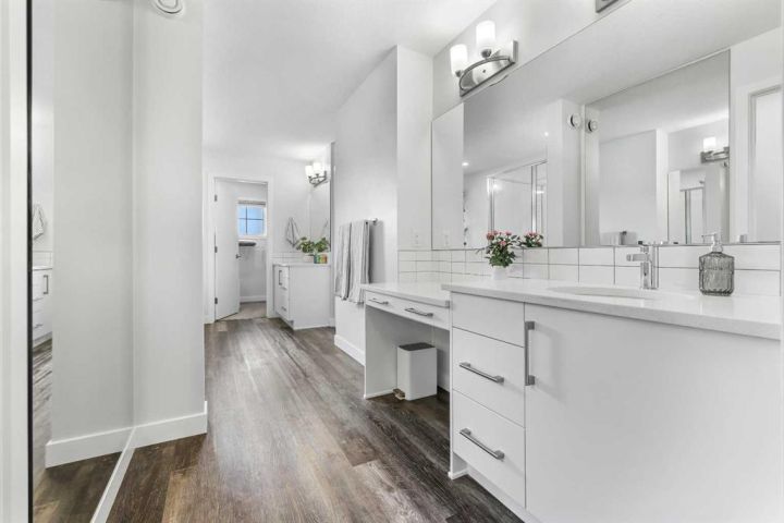 Upstairs, you’ll find three generous bedrooms, a bonus room for extra comfort, and a convenient upstairs laundry room. The primary suite feels like a true retreat with a 5-piece ensuite, including a soaker tub, glass shower, built-in make-up vanity and dual walk-in closets.