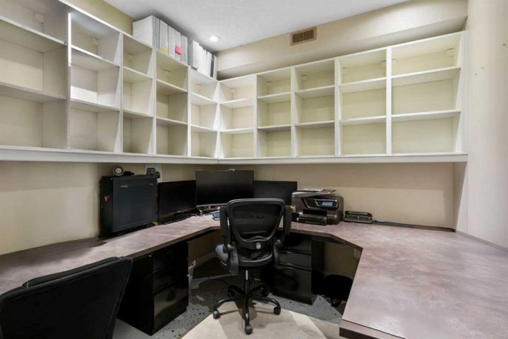 There is 1141 Sq ft of space on the main floor with in floor heat , 3 really nice offices with lots of cabinets and counters and built in desks on the main plus coffee/kitchen area with dishwasher, bar fridge, microwave, cabinets and counter. plus great warehouse space. Epoxy floor, Led lights, Phone and data to multiple locations plus in conduit to pull more if needed. Security cameras, audio in ceiling of offices. Central AC two zones with one for the main floor offices, and one for the rest. Another 651 sq ft on the upper mezzanine with separate office space plus a large general office space area. Central Vac, All electrical plugs 20 amps, 3 parking stalls, This bay would make a great electrician shop/ plumbing shop or other trades, or use for the office spaces Door is 12 ft x 12 ft. Zoned General industrial, this bay could be used for Animal service/ Artist Studio/Automotive Service/Business Support Service/ Government service/ Industrial support services, Innovations Service/Rec facility/ Recreational Vehicle sales and service/ or Self Storage. Space is available for February 01, 2026. Call for more details and to book a viewing.